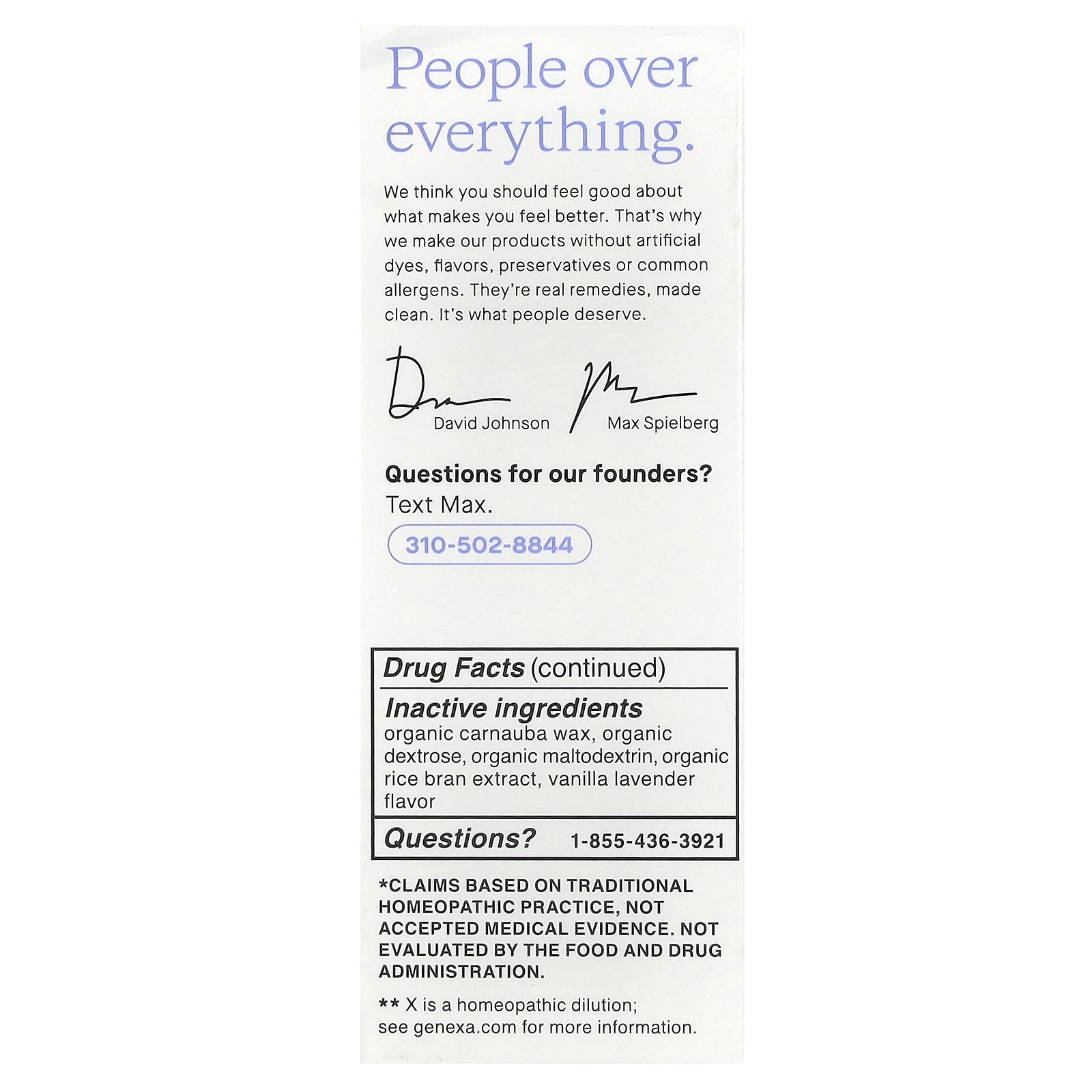 | Inactive ingredients: Organic carnauba wax, organic dextrose, organic maltodextrin, organic rice bran extract, vanilla lavender flavor. |