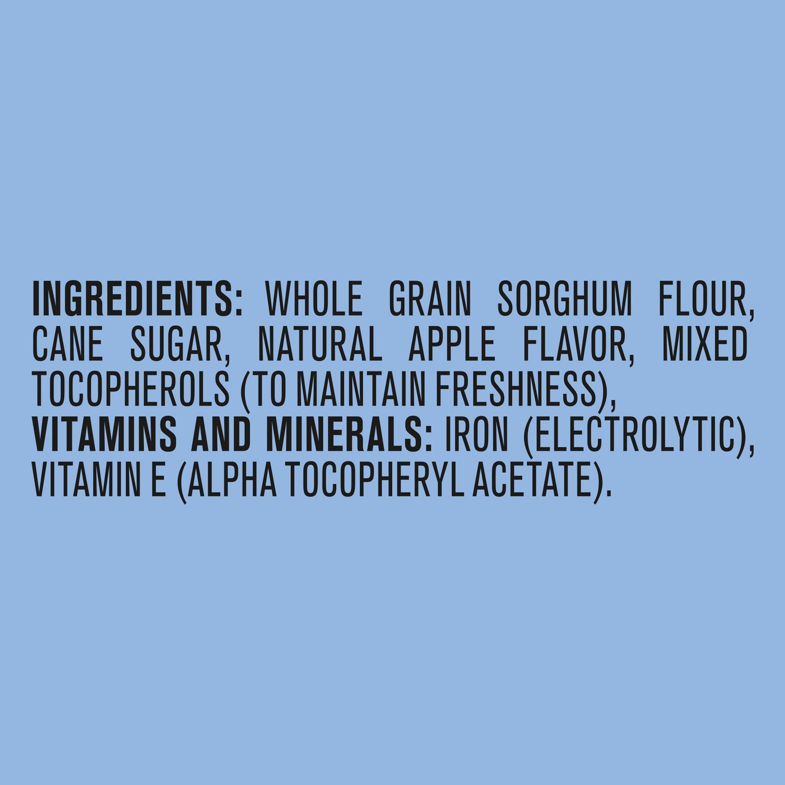 Whole grain sorghum flour, cane sugar, natural apple flavor, mixed tocopherols (to maintain freshness).