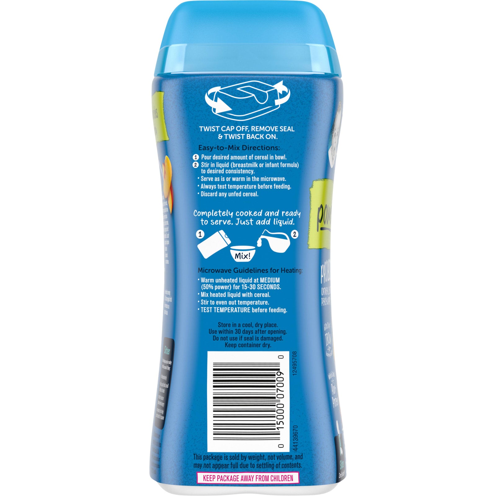 Whole grain oat flour, red lentil flour, peach flakes, apple flakes, potassium phosphate, sunflower lecithin, granola lecithin, b. lactis cultures, vitamins and minerals: vitamin C (ascorbic acid), iron (electrolytic), vitamin E (alpha tocopheryl acetate), zinc sulfate, niacinamide, vitamin B2 (riboflavin), vitamin B1 (thiamine mononitrate), vitamin B6 (pyridoxine hydrochloride), folic acid, vitamin B12.