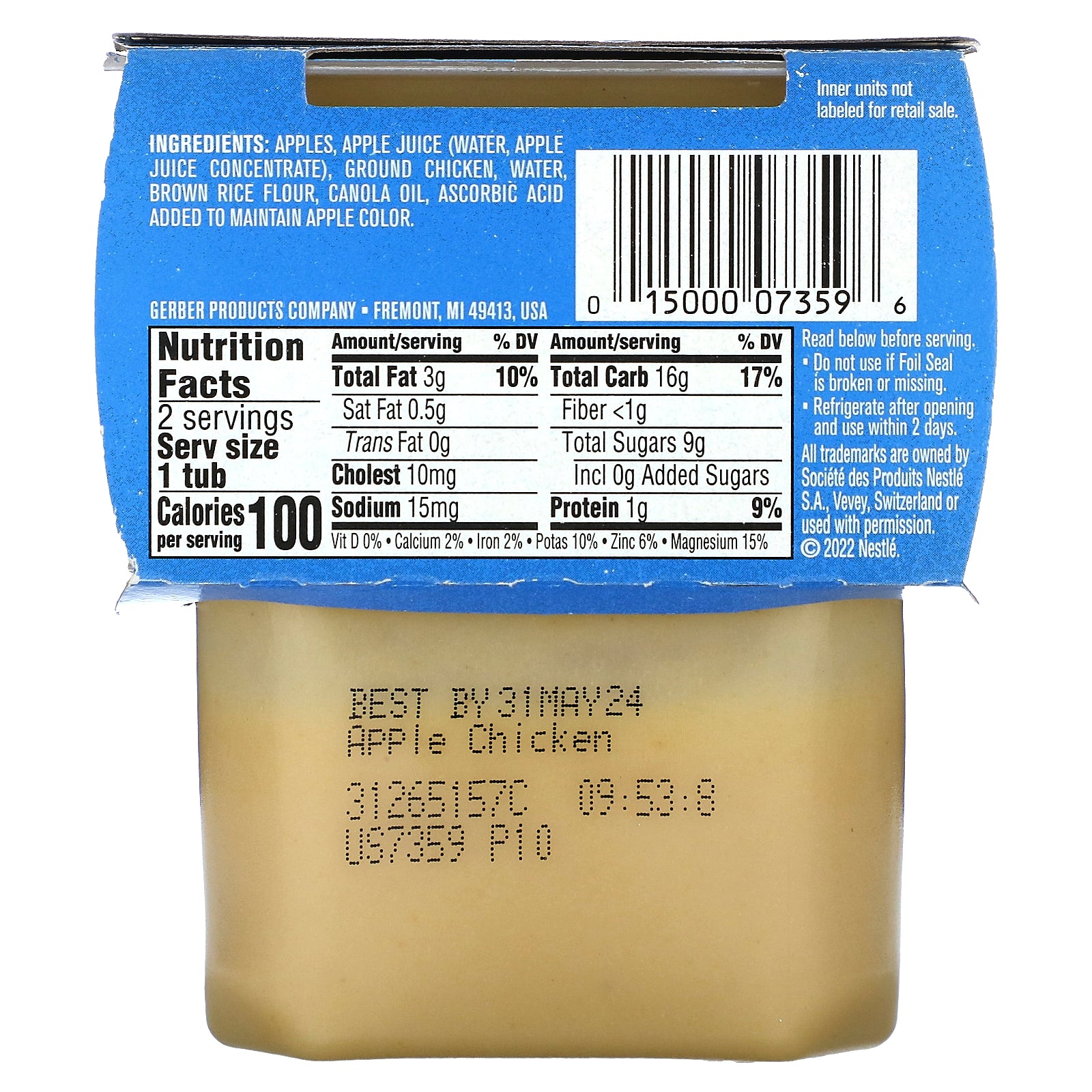 Gerber, Mealtime for Baby, Power Blend™, 2nd Foods®, Apple Chicken, 2 Pack, 4 oz (113 g) Each