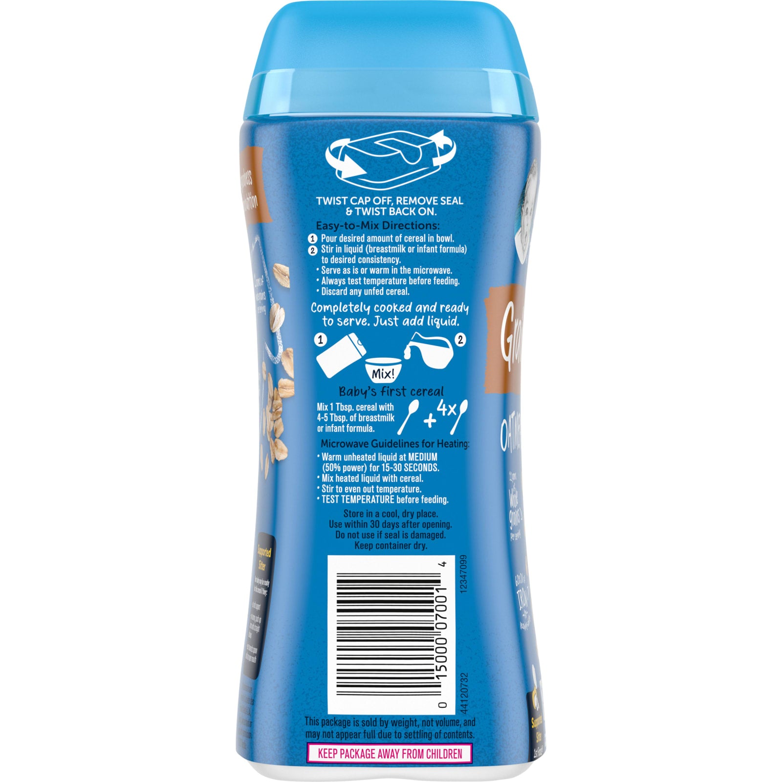 Whole grain oat flour and oat flour (contains wheat), potassium phosphate, vitamins and minerals: calcium carbonate, vitamin c (ascorbic acid), iron (electrolytic), zinc sulfate, vitamin e (alpha tocopheryl acetate), niacinamide, vitamin b2 (riboflavin), vitamin b1 (thiamin mononitrate), vitamin b6 (pyridoxine hydrochloride), folic acid, vitamin b12.