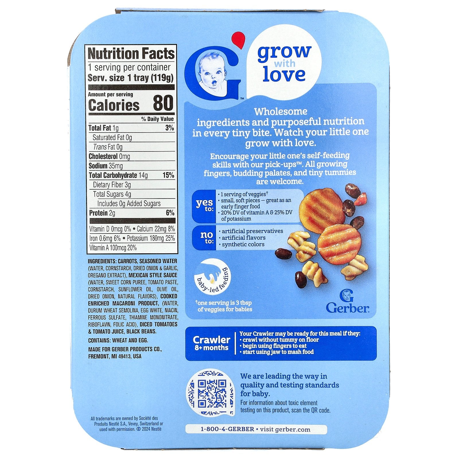 Carrots, seasoned water (water, cornstarch, dried onion & garlic, oregano extract), mexican style sauce (water, sweet corn puree, tomato paste, cornstarch, sunflower oil, olive oil, dried onion, natural flavors), cooked enriched macaroni product, (water, durum wheat semolina, egg white, niacin, ferrous sulfate, thiamine mononitrate, riboflavin, folic acid), diced tomatoes & tomato juice, black beans.