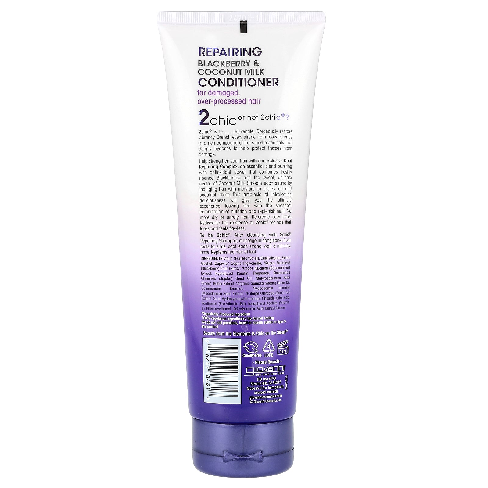 Help strengthen your hair with our exclusive Dual Repairing Complex, an essential blend bursting with antioxidant power that combines freshly ripened Blackberries and the sweet, delicate nectar of Coconut Milk. Smooth each strand by indulging hair with moisture for a silky feel and beautiful shine. This ambrosia of intoxicating deliciousness will give you the ultimate experience, leaving hair with the strongest combination of nutrition and replenishment. No more dry or unruly hair. Re-create sexy locks. Rediscover the existence of 2chic® for hair that looks and feels flawless.