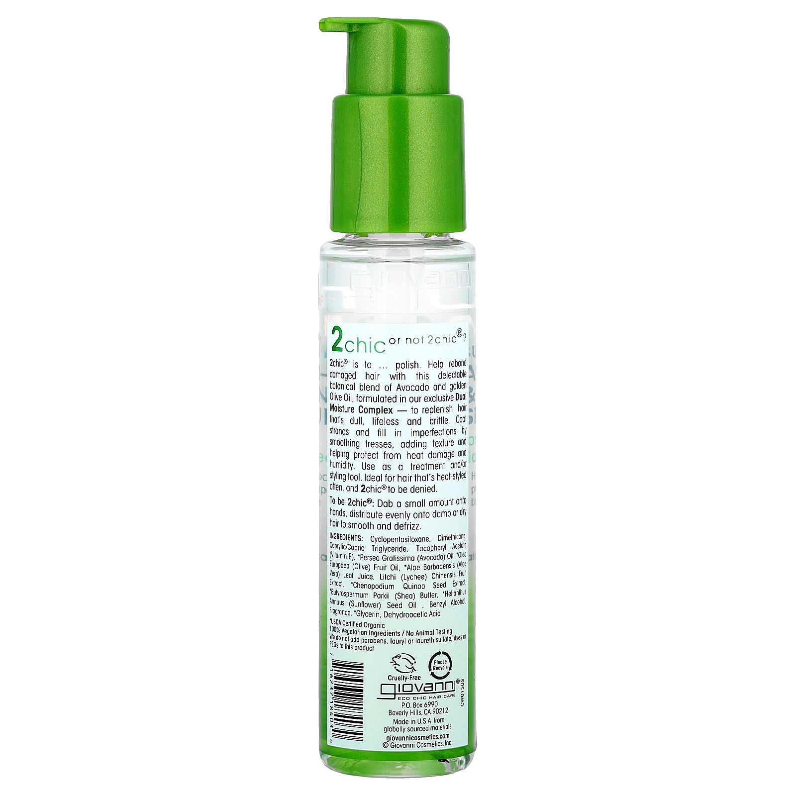 2chic® is to... polish. Help rebond damaged hair with this delectable botanical blend of Avocado and golden Olive oil, formulated in our exclusive Dual Moisture Complex - to replenish hair that's dull, lifeless and brittle. Coat strands and fill in imperfections by smoothing tresses, adding texture and helping protect from heat damage and humidity. Use as a treatment and/or styling tool. Ideal for hair that´s heat-styled often, and 2chic® to be denied.