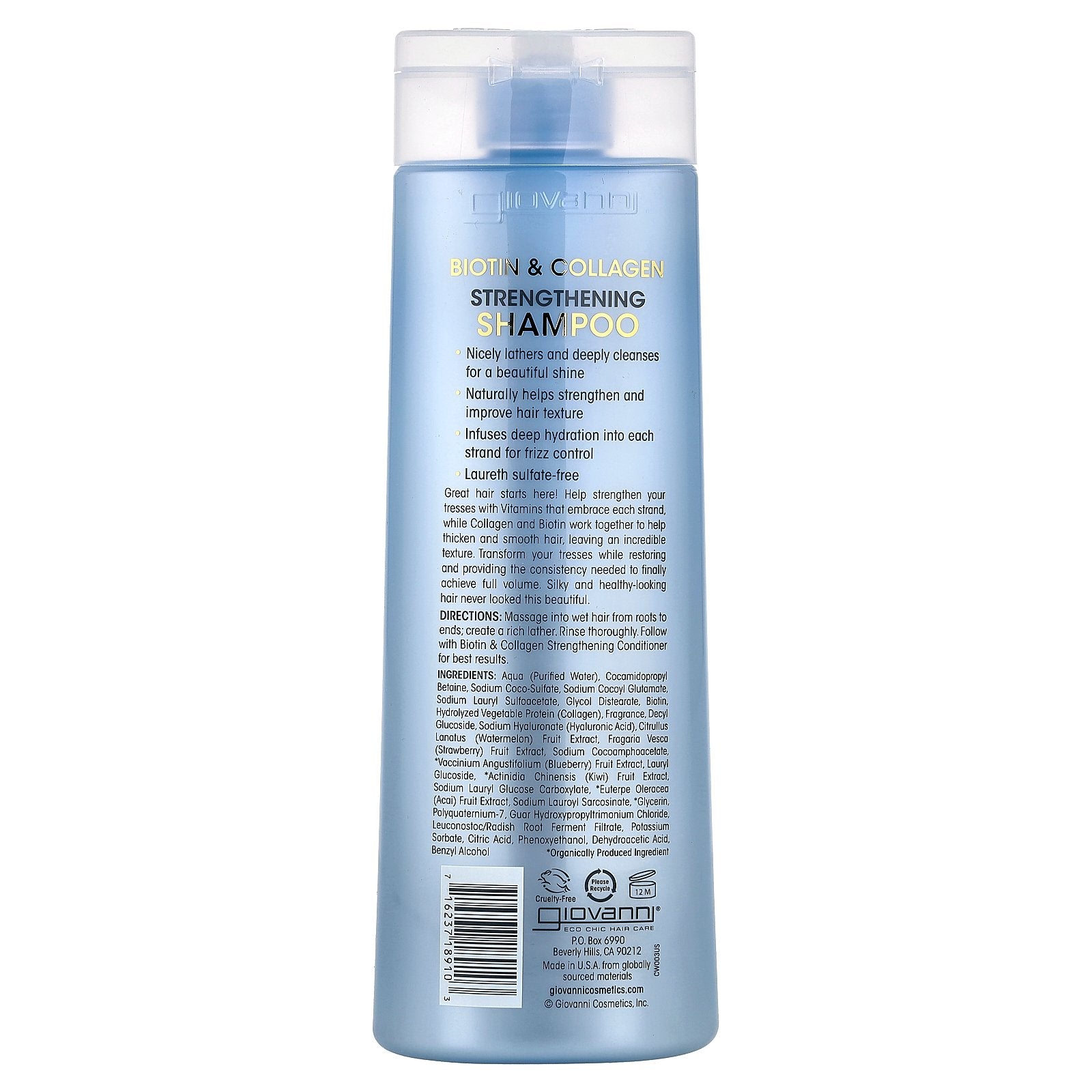 Massage into wet hair from roots to ends; create a rich lather. Rinse thoroughly. Follow with Biotin & Collagen Strengthening Conditioner for best results.