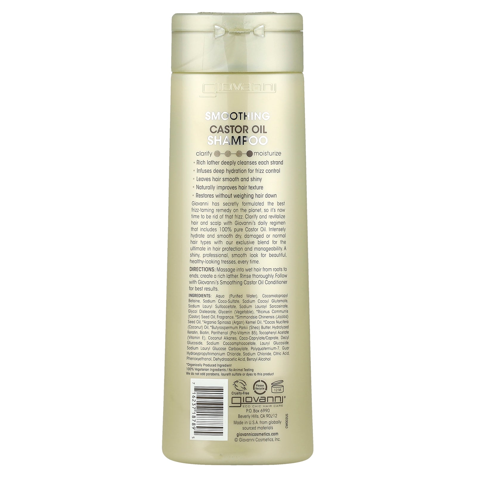 Massage into wet hair from roots to ends; create a rich lather. Rinse thoroughly. Follow with Giovanni's Smoothing Castor Oil Conditioner for best results.