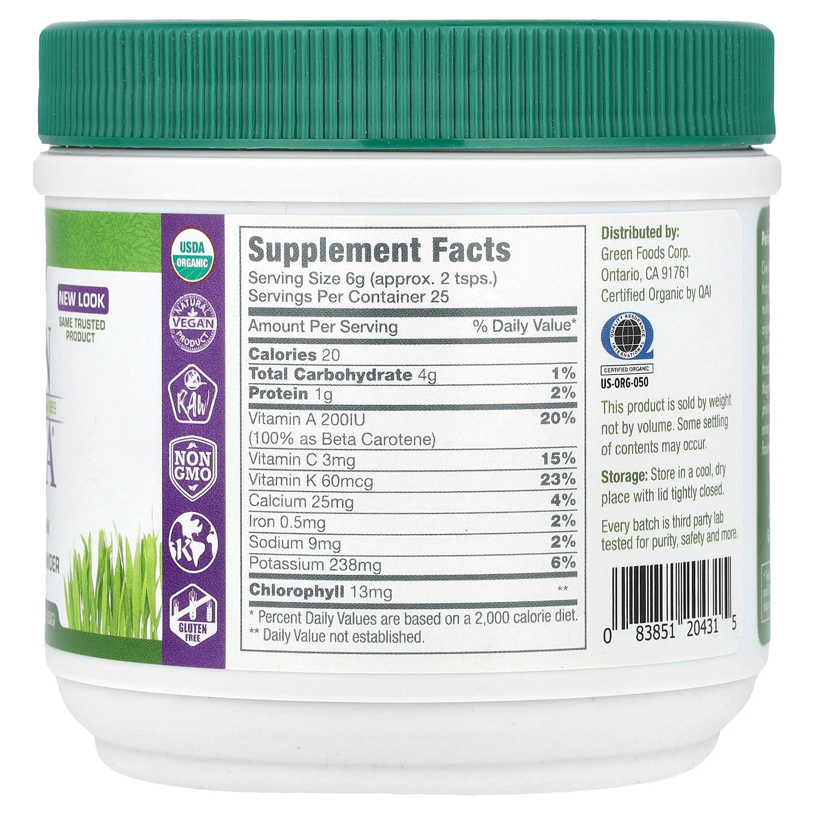 Powdered juice from organic young barley grass, organic maltodextrin (a complex carbohydrate from tapioca), organic brown rice.