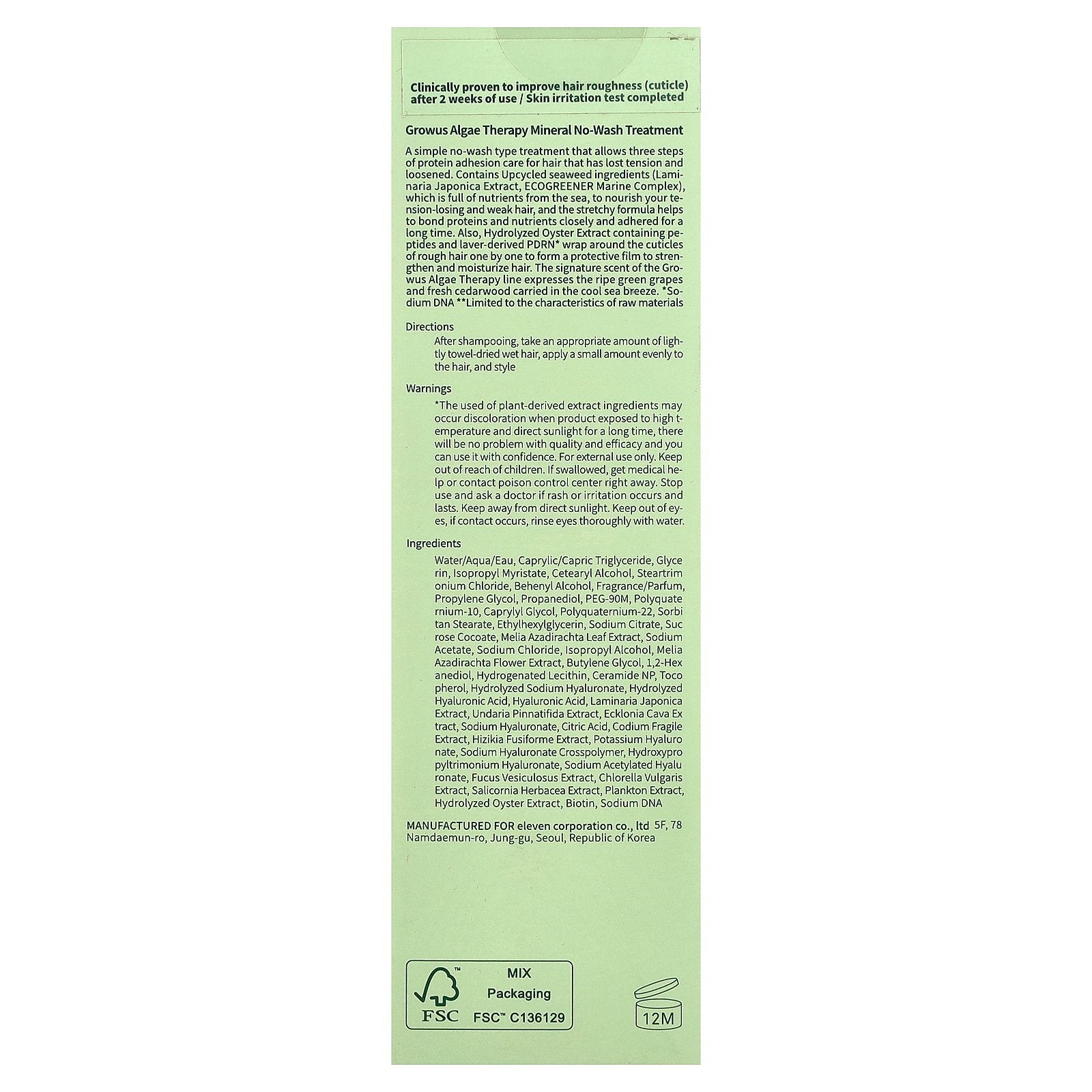 A simple no-wash type treatment that allows three steps of protein adhesion care for hair that has lost tension and loosened. Contains Upcycled seaweed ingredients (Laminaria Japonica Extract, ECOGREENER Marine Complex), which is full of nutrients from the sea, to nourish your tension-losing and weak hair, and the stretchy formula helps to bond proteins and nutrients closely and adhered for a long time. Also, Hydrolyzed Oyster Extract containing peptides and laver-derived PDRN* wrap around the cuticles of rough hair one by one to form a protective film to strengthen and moisturize hair. The signature scent of the Growus Algae Therapy line expresses the ripe green grapes and fresh cedarwood carried in the cool sea breeze.