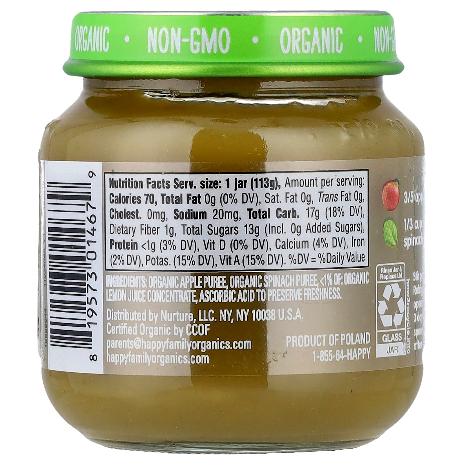 Organic apple puree, organic spinach puree, <1% of: organic lemon juice concentrate, ascorbic acid to preserve freshness.