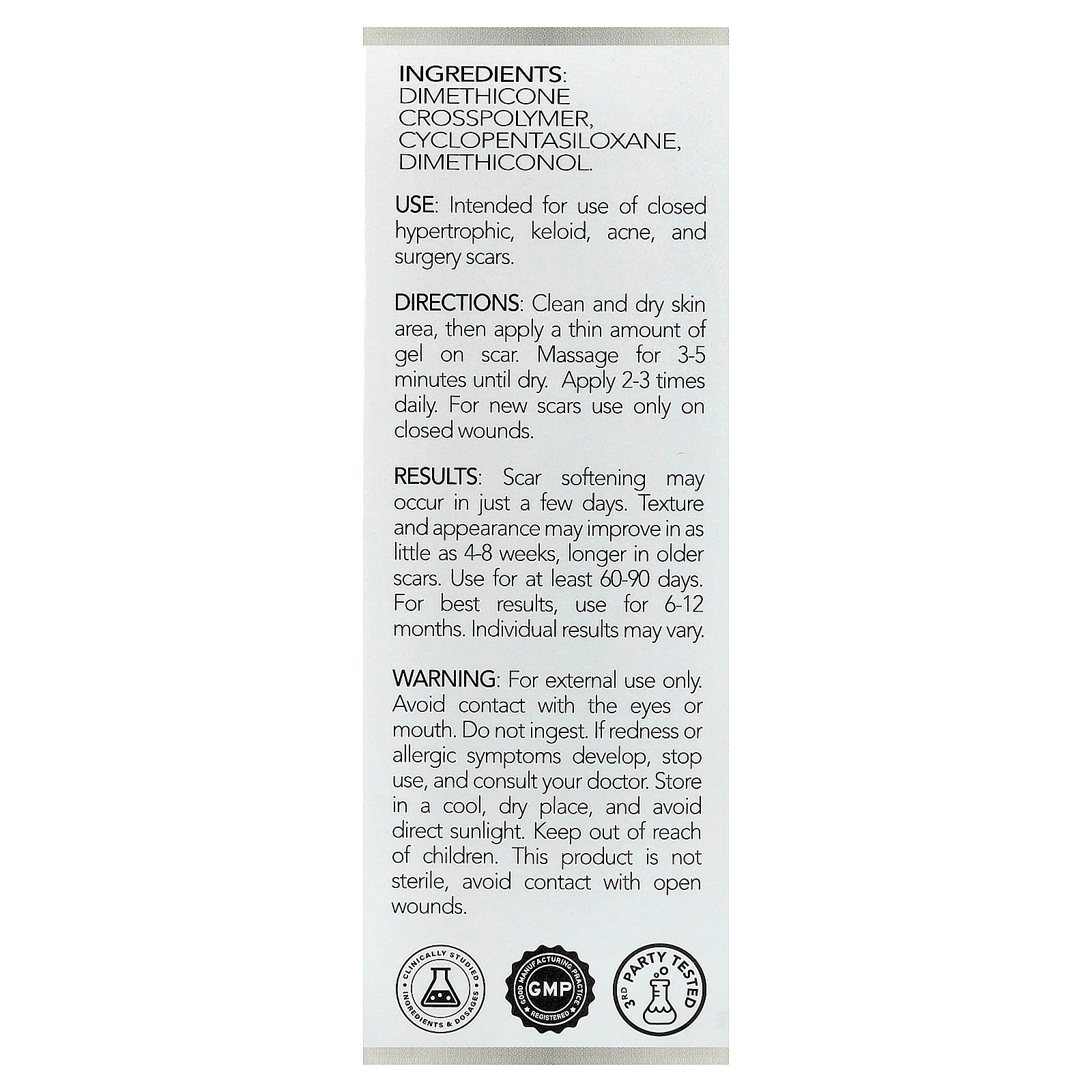 Clean and dry skin area, then apply a thin amount of gel on scar. Massage for 3-5 minutes until dry. Apply 2-3 times daily. For new scars use only on closed wounds.