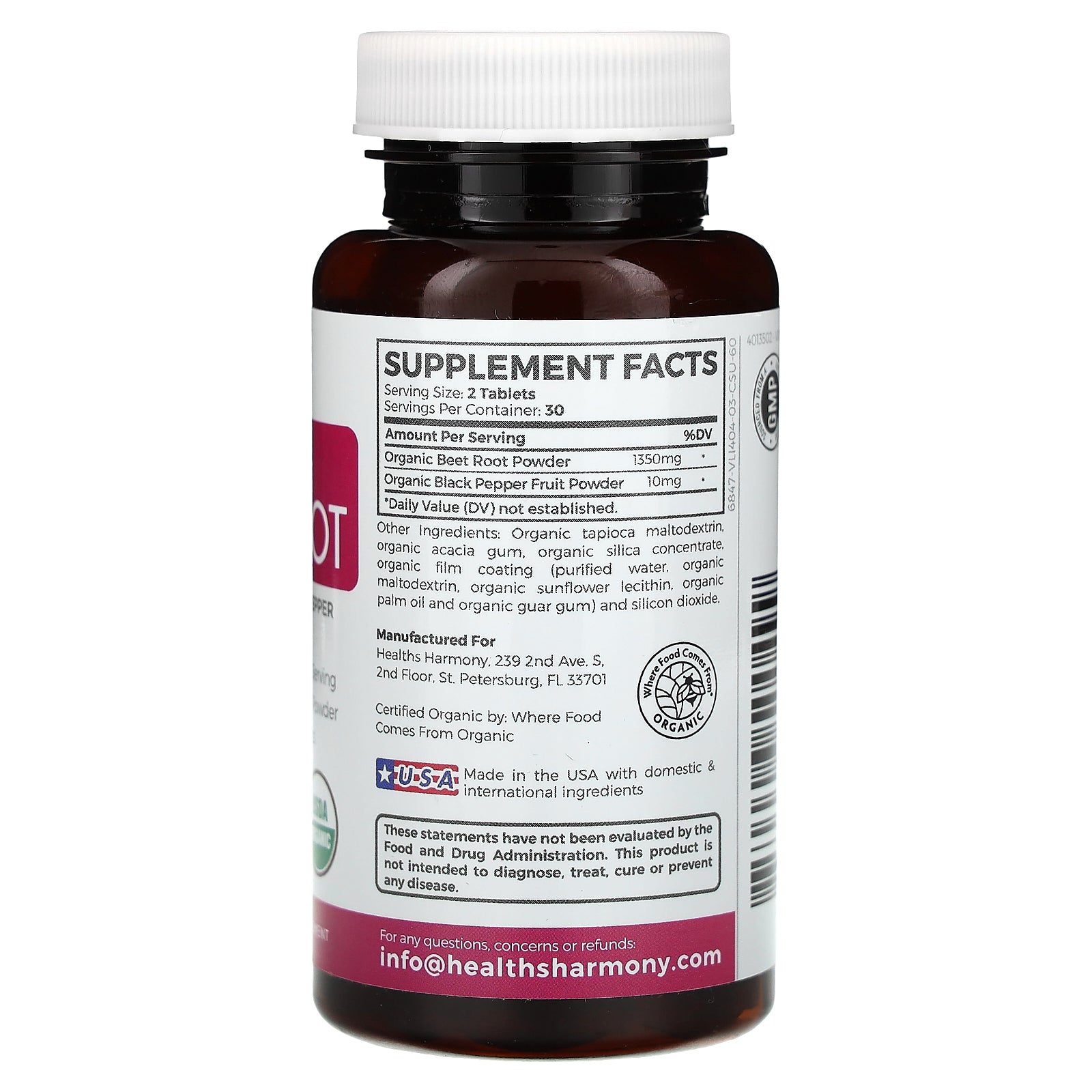 | Organic Beet Root Powder | 1,350 mg | * |