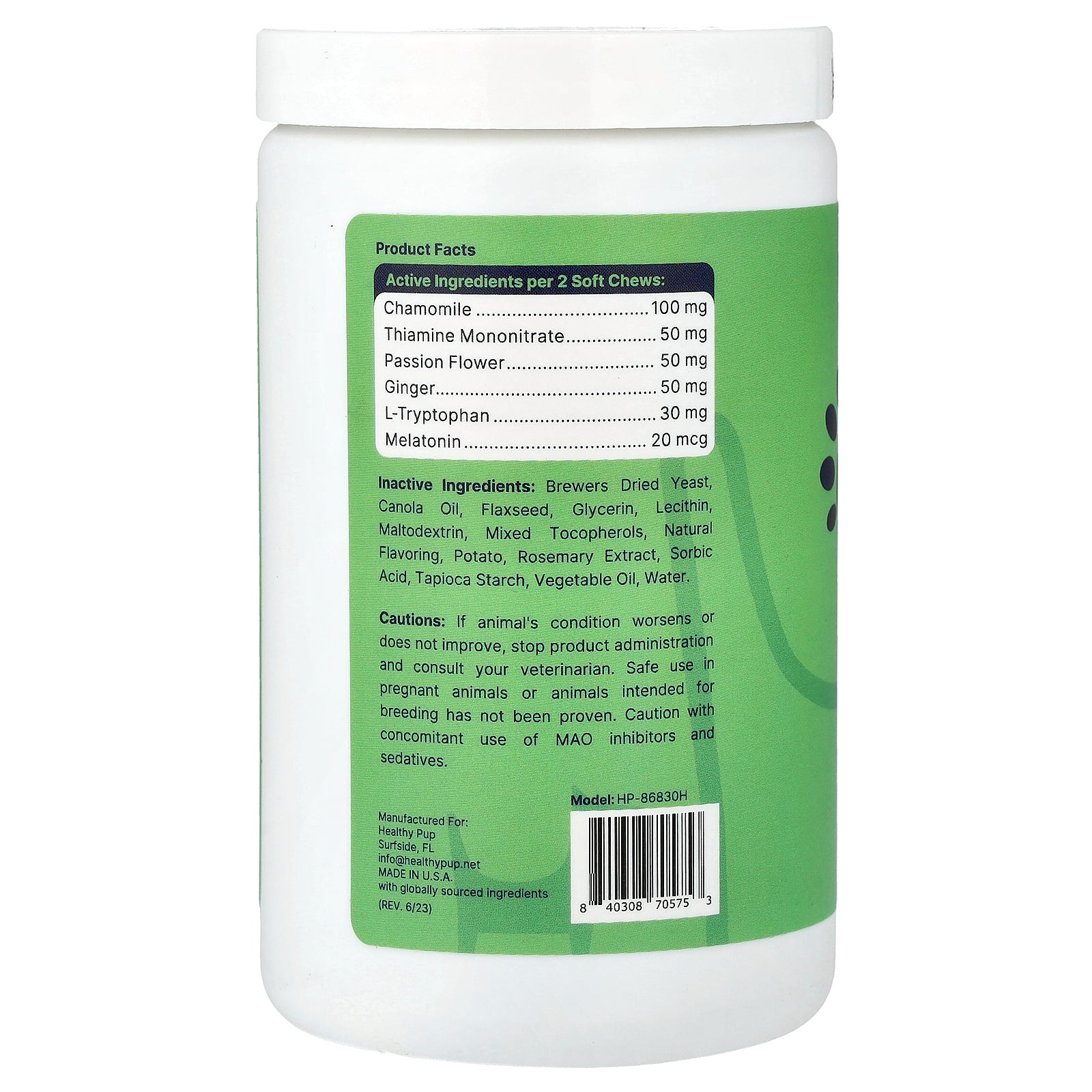 | Active Ingredients Per 2 Soft Chews: | |