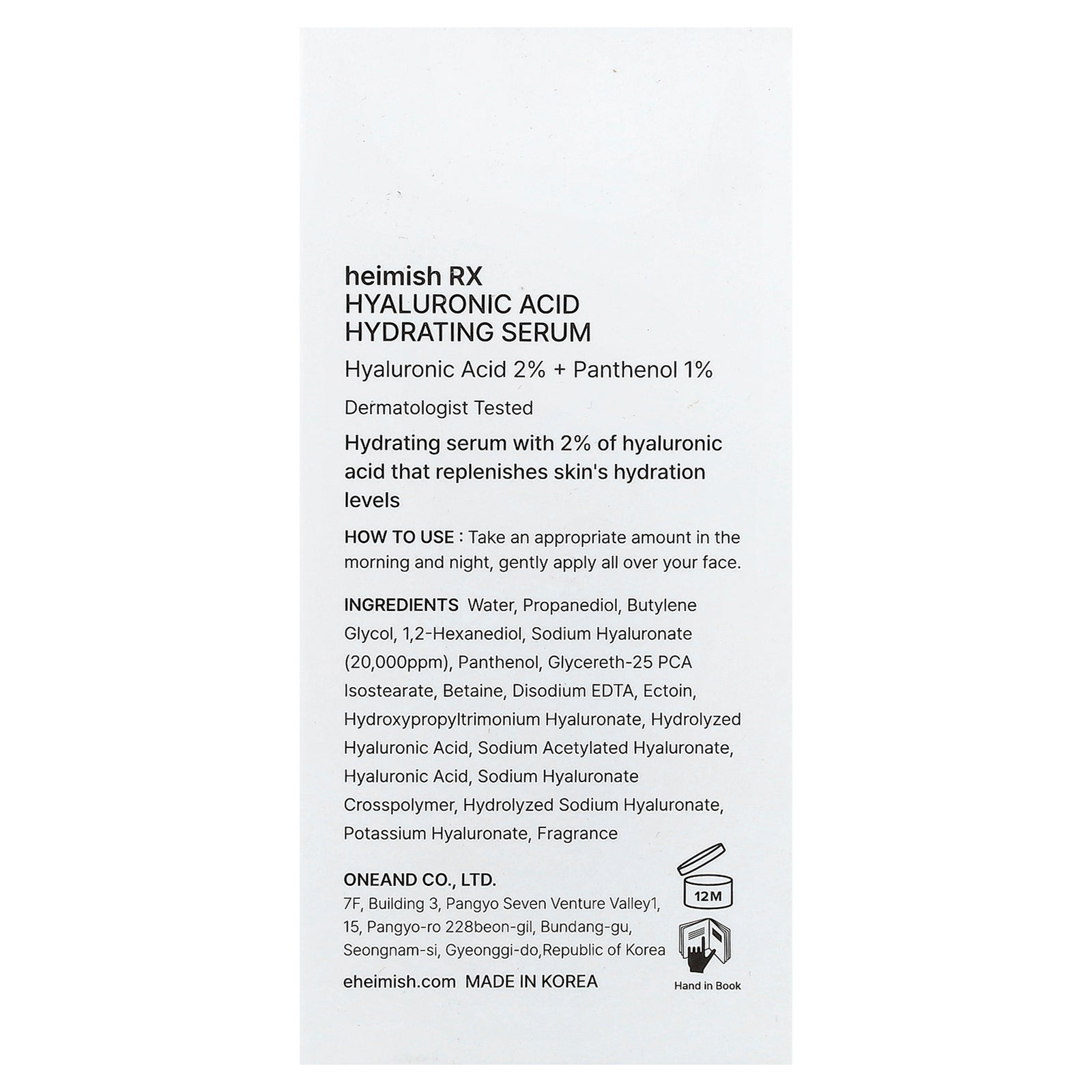 Water, propanediol, butylene glycol, 1,2-hexanediol, sodium hyaluronate (20,000 ppm), panthenol, glycereth-25 pca isostearate, betaine, disodium edta, ectoin, hydroxypropyltrimonium hyaluronate, hydrolyzed hyaluronic acid, sodium acetylated hyaluronate, hyaluronic acid, sodium hyaluronate crosspolymer, hydrolyzed sodium hyaluronate, potassium hyaluronate, fragrance.