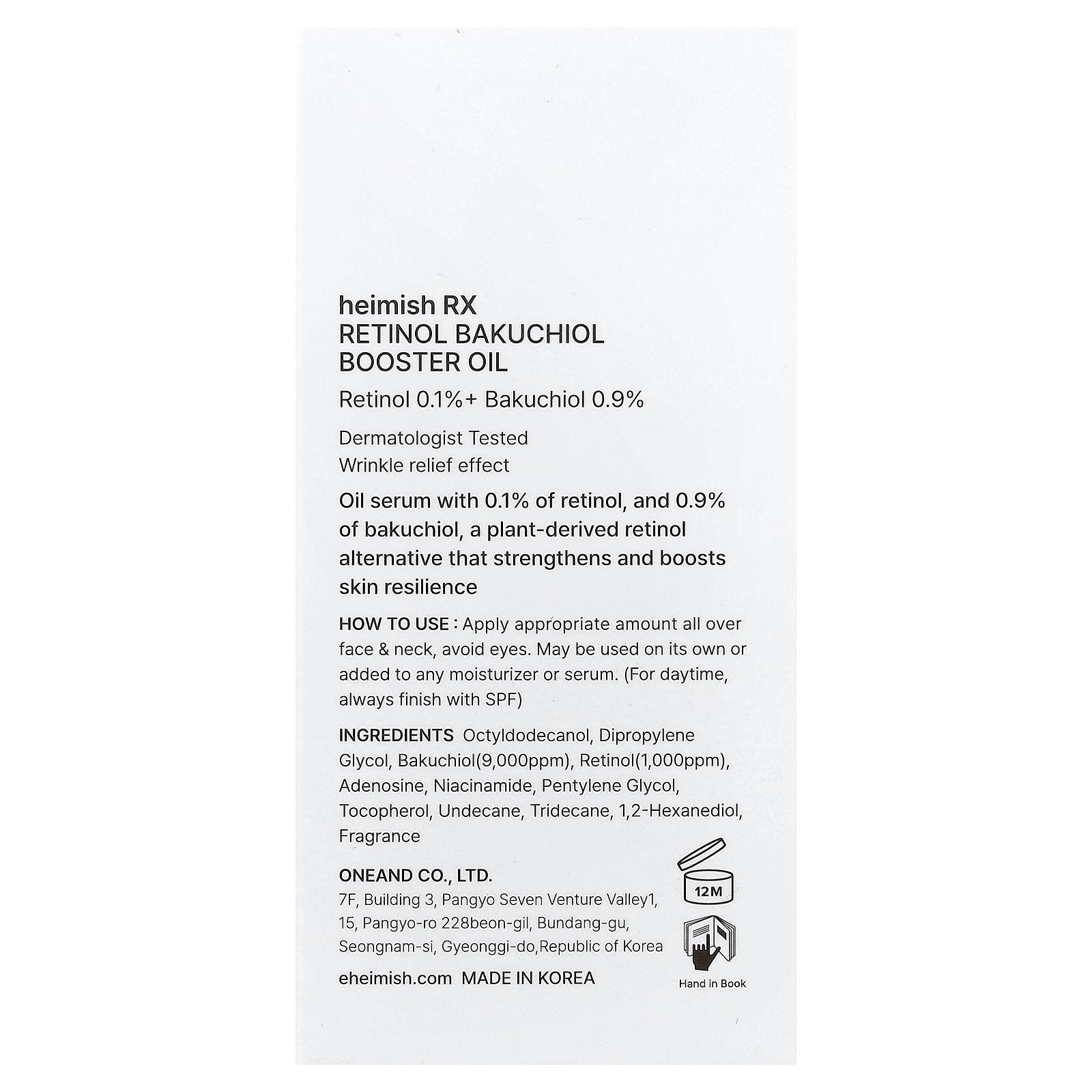 Oil serum with 0.1% of retinol, and 0.9% of bakuchiol, a plant-derived retinol alternative that strengthens and boosts skin resilience.