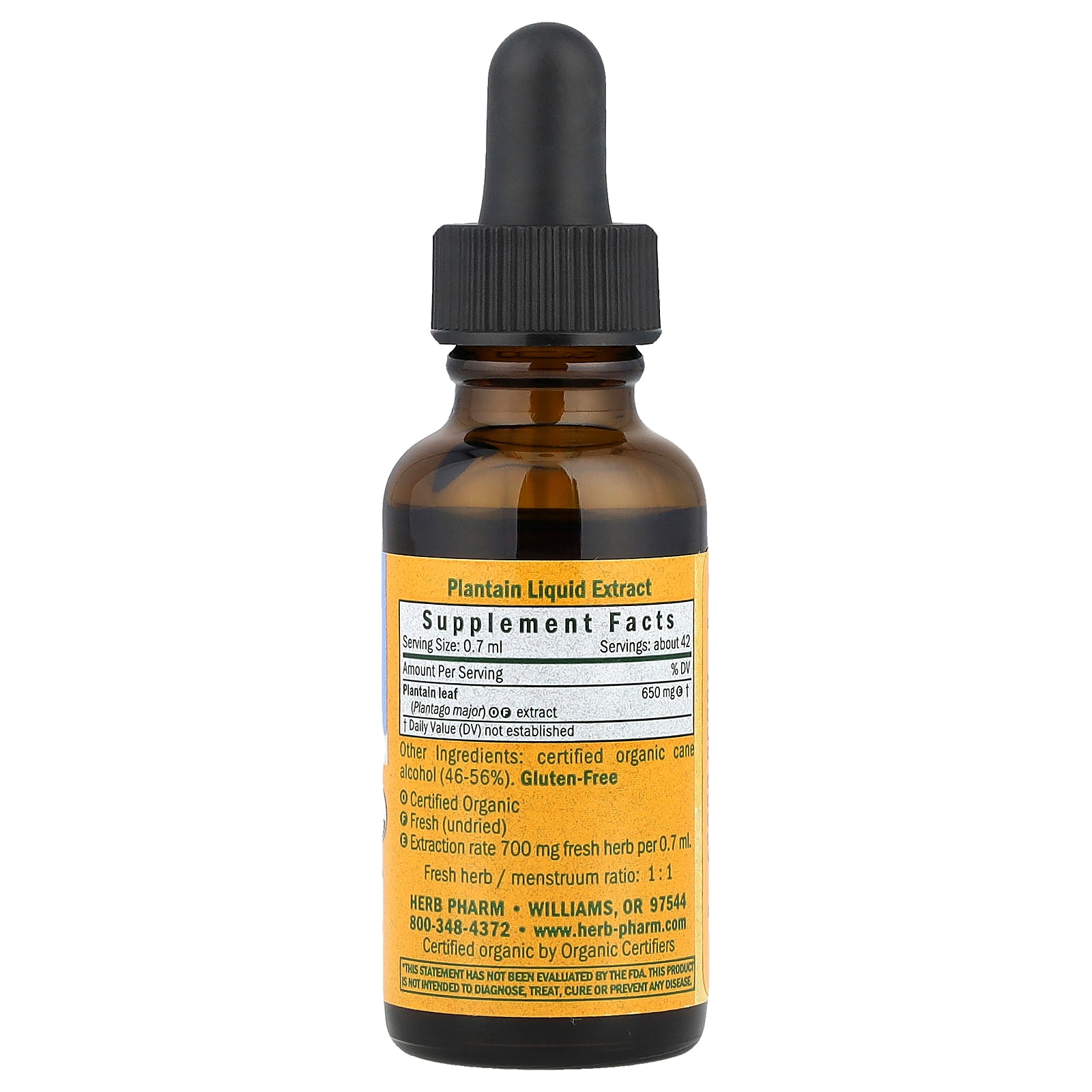 We prepare our Plantain extract from fresh (never dried) leaf of Plantago major plants grown on our own Certified Organic farms in southern Oregon. We harvest the leaves early each spring, then extract them fresh.