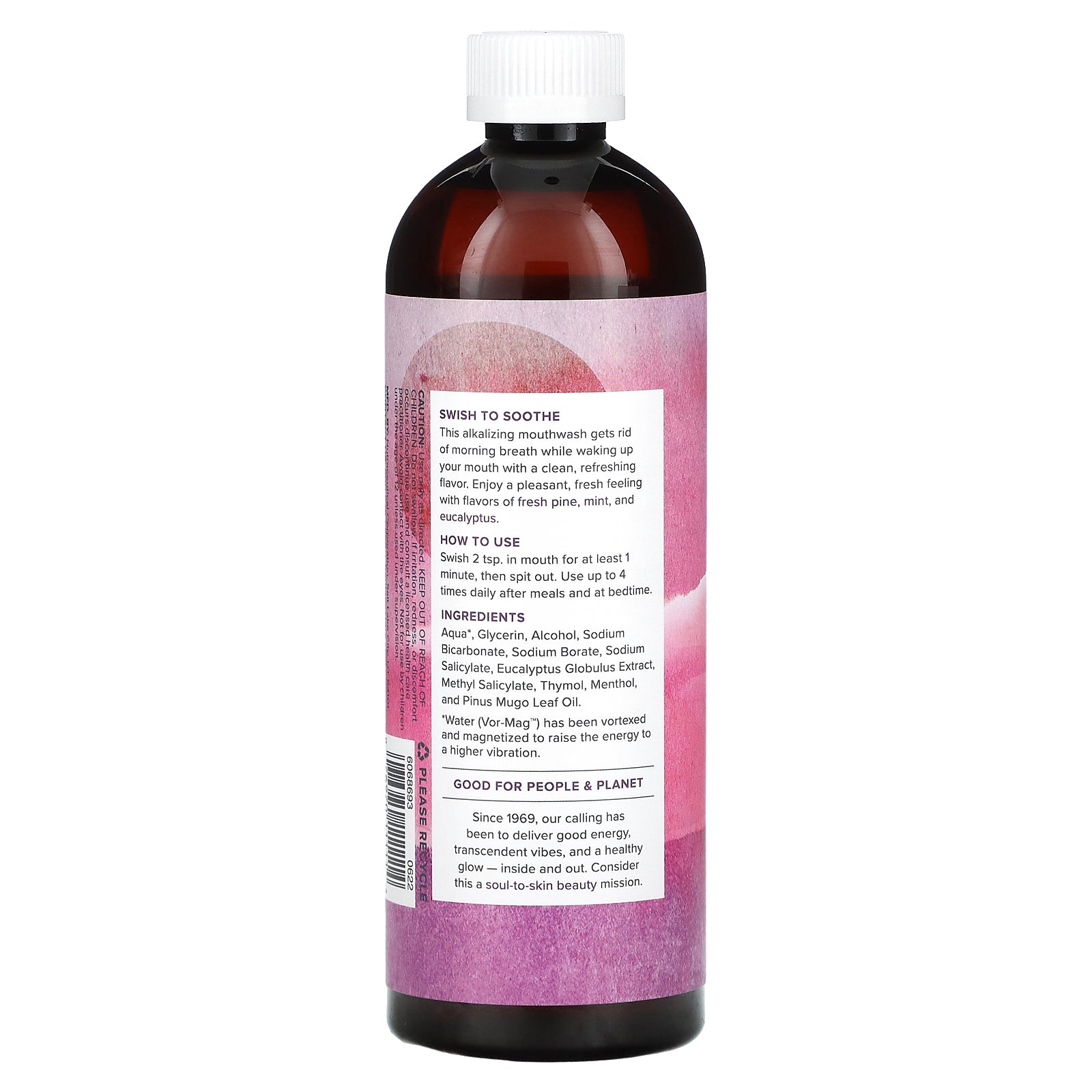 This alkalizing mouthwash gets rid of morning breath while waking up your mouth with a clean, refreshing flavor. Enjoy a pleasant, fresh feeling with flavors of fresh pine, mint, and eucalyptus.
