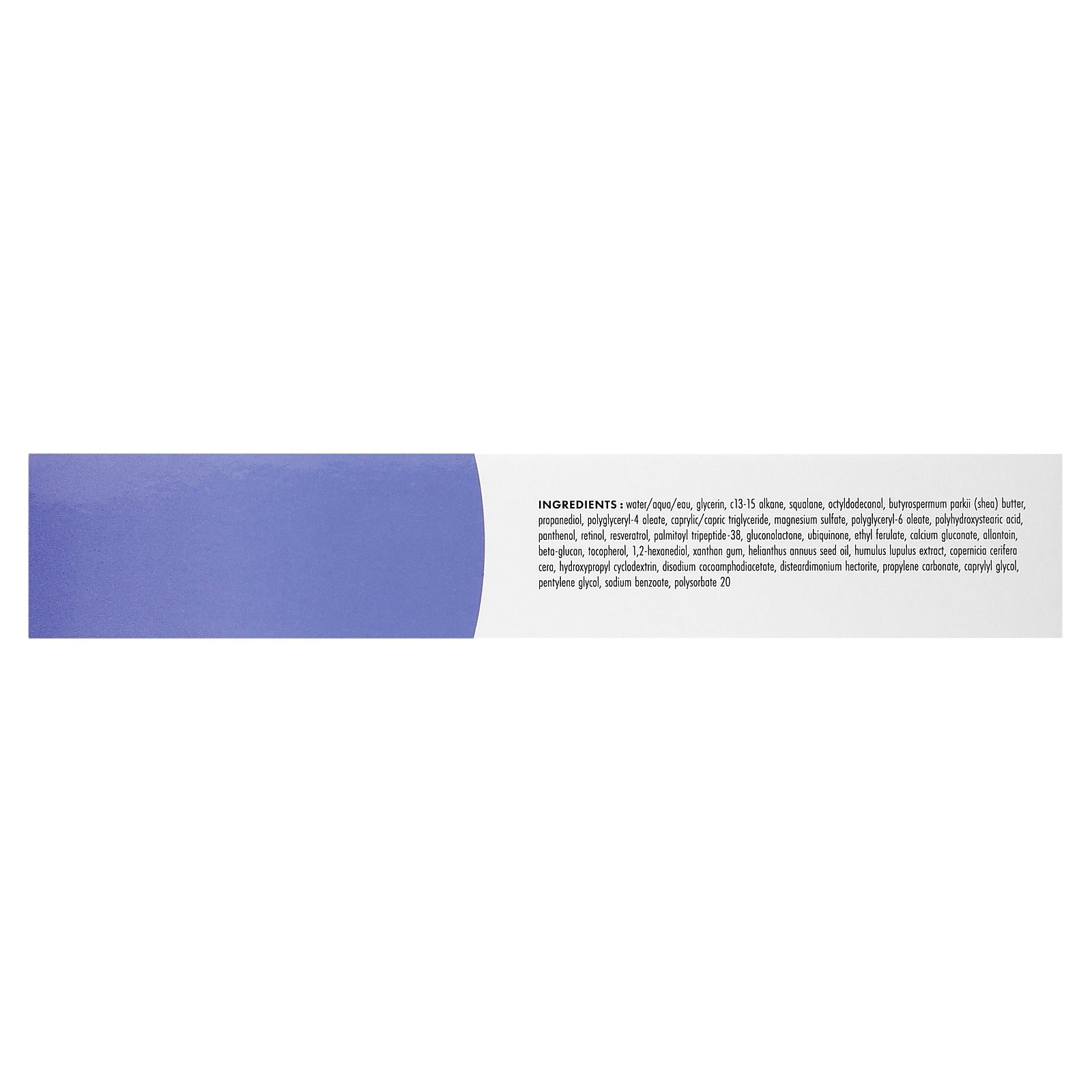 Water, glycerin, c13-15 alkane, squalane, octyldodecanol, butyrospermum parkii (shea) butter, propanediol, polyglyceryl-4 oleate, caprylic/capric triglyceride, magnesium sulfate, polyglyceryl-6 oleate, polyhydroxystearic acid, panthenol, retinol, resveratrol, palmitoyl tripeptide-38, gluconolactone, ubiquinone, ethyl ferulate, calcium gluconate, allantoin, beta-glucan, tocopherol, 1,2-hexanediol, xanthan gum, helianthus annuus seed oil, humulus lupulus extract, copernicia cerifera cera, hydroxypropyl cyclodextrin, disodium cocoamphodiacetate, disteardimonium hectorite, propylene carbonate, caprylyl glycol, pentylene glycol, sodium benzoate, polysorbate 20.