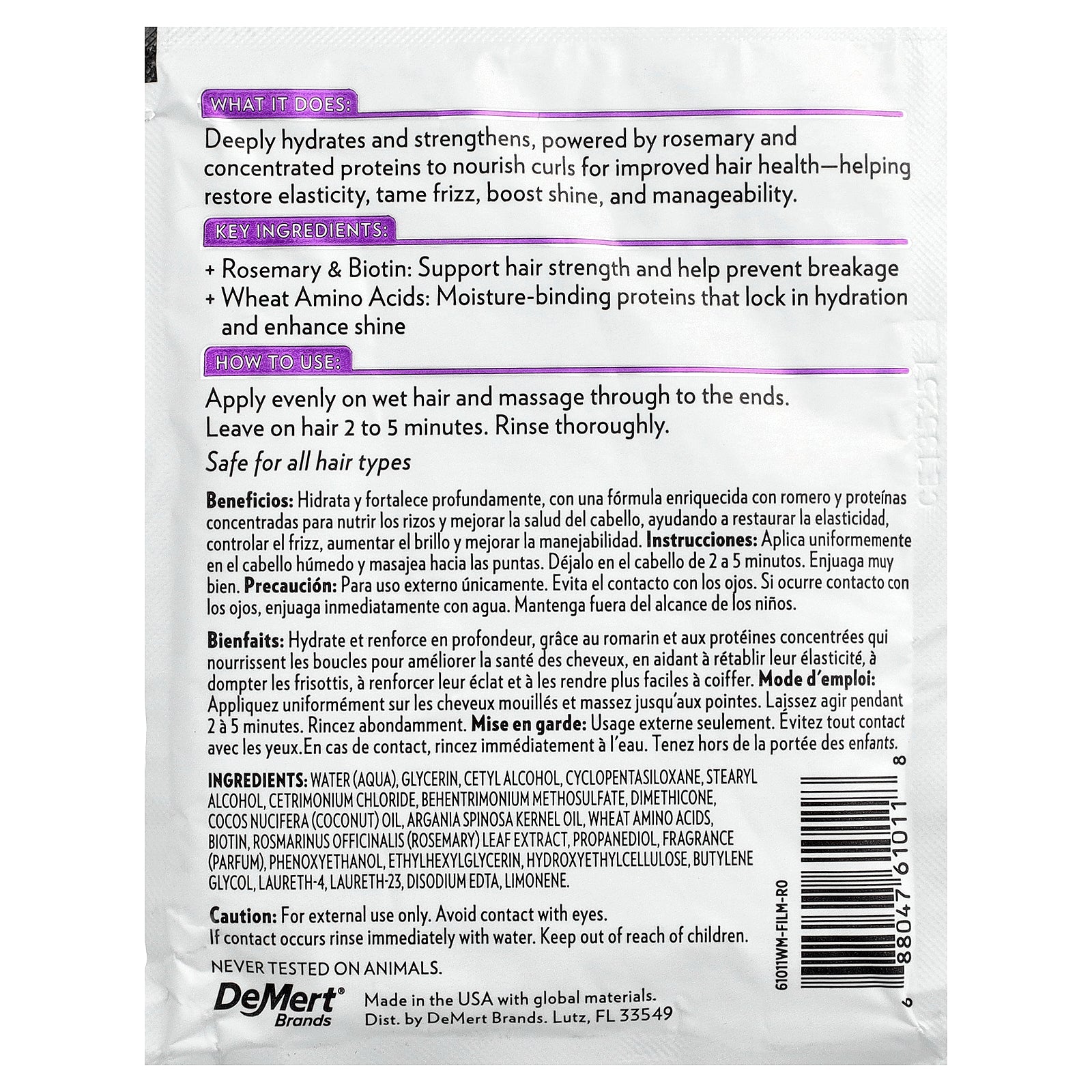 Deeply hydrates and strengthens, powered by rosemary and concentrated proteins to nourish curls for improved hair health-helping restore elasticity, tame frizz, boost shine, and manageability.