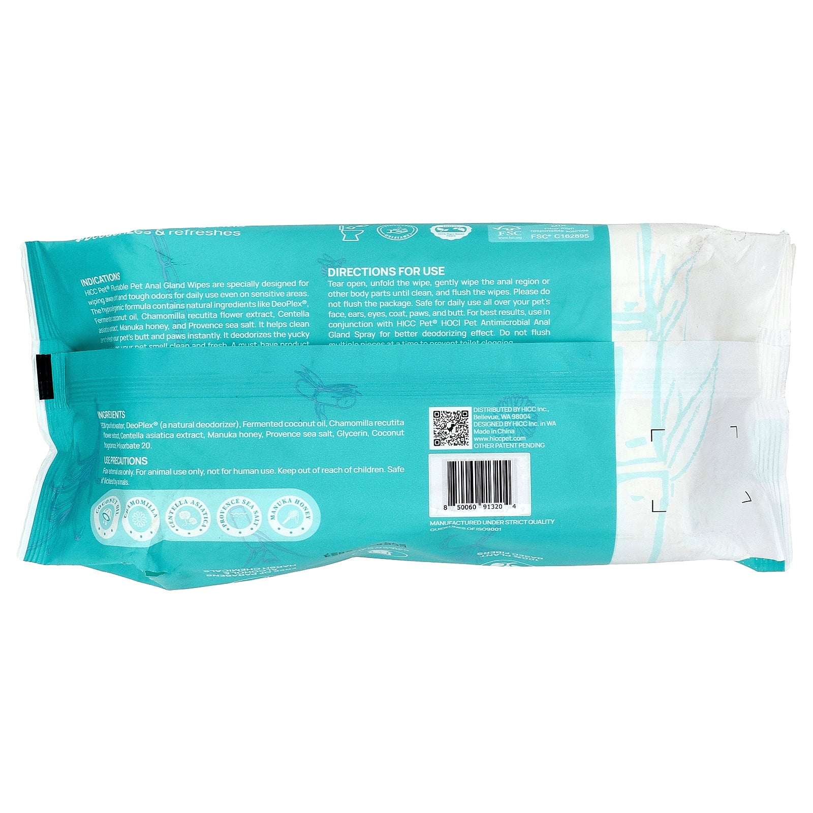 HICC Pet® Flustable Pet Anal Gland Wipes are specially designed for wiping away dirt and tough odors for daily use even on sensitive areas. The hypoallergenic formula contains natural ingredients like DeoPlex®, Fermented coconut oil, Chamomilla recutita flower extract, Centella asiatica extract, Manuka honey, and Provence sea salt. It helps clean and refresh your pet's butt and paws instantly. It deodorizes the yucky smell and makes your pet smell clean and fresh. A must-have product that you and your fur baby will love!
