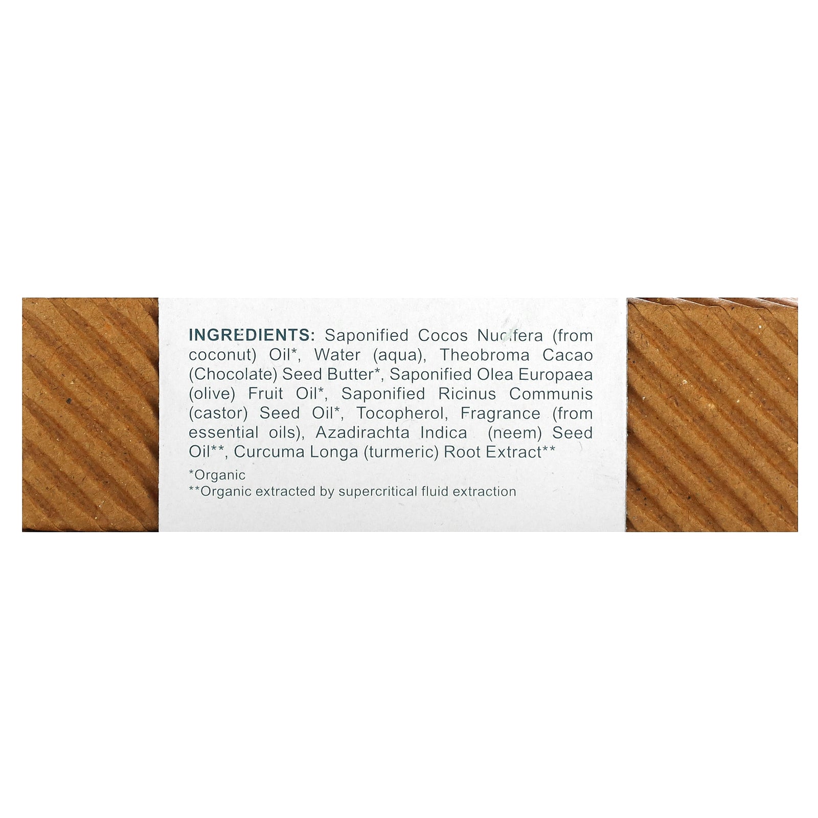 Saponified cocos nucifera (from coconut) oil*, water (aqua), theobroma cacao (chocolate) seed butter*, saponified olea europaea (olive) fruit oil*, saponified ricinus communis (castor) seed oil*, tocopherol, fragrance (from essential oils), azadirachta indica (neem) seed oil**, curcuma longa (turmeric) root extract**.