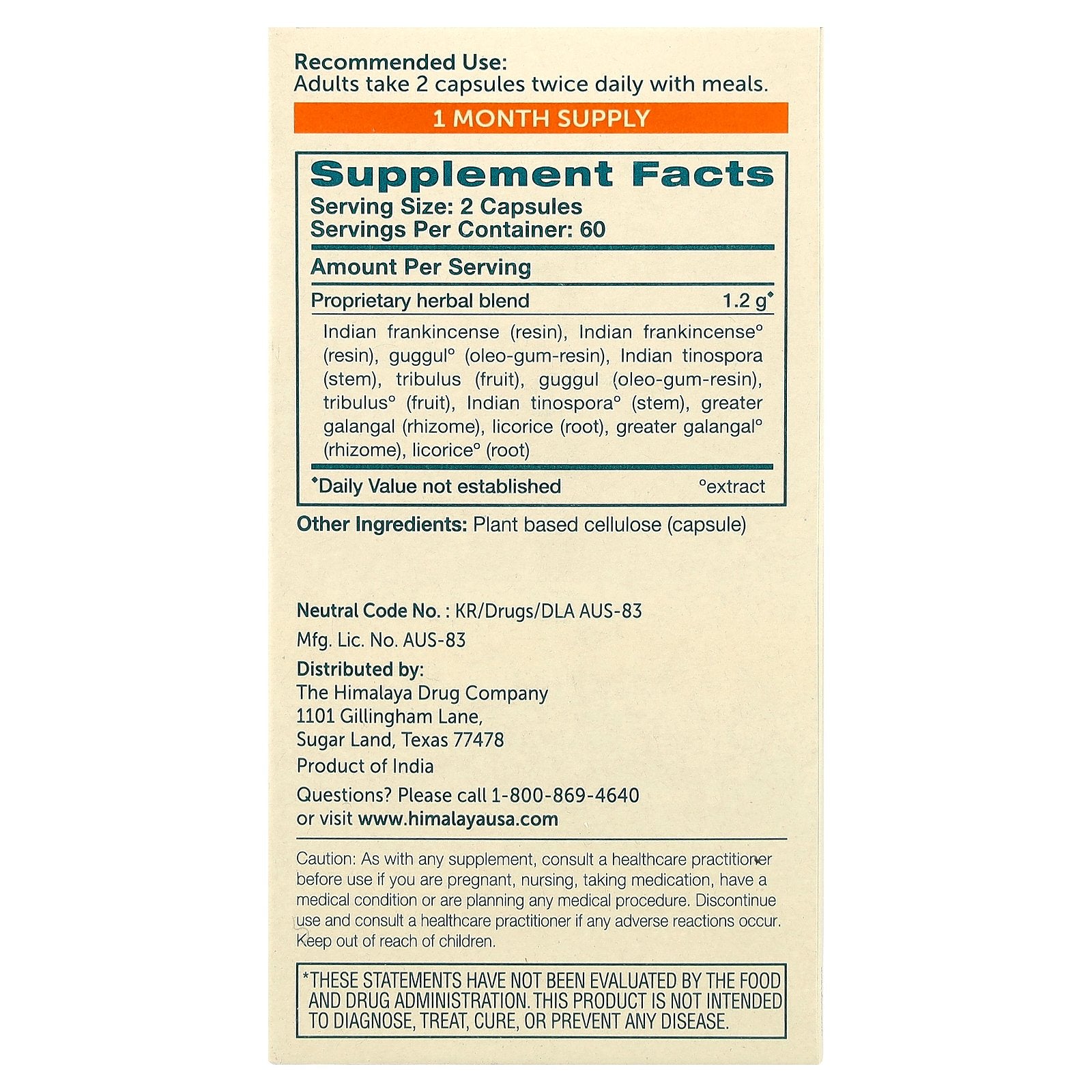 Proprietary herbal blend Indian frankincense (resin), Indian frankincense° (resin), guggul° (oleo-gum-resin), Indian tinospora (stem), tribulus (fruit), guggul (oleo-gum-resin), tribulus° (fruit), Indian tinospora° (stem), greater galangal (rhizome), licorice (root), greater galangal° (rhizome), licorice° (root). |