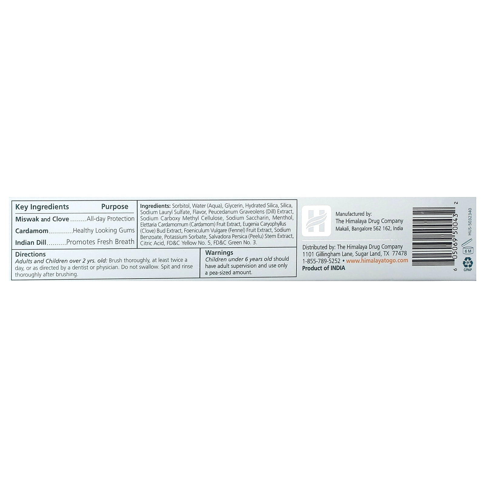 | Sorbitol, water (aqua), glycerin, hydrated silica, silica, sodium lauryl sulfate, flavor, peucedanum graveolens (dill) extract, sodium carboxy methyl cellulose, sodium saccharin, menthol, elettaria cardamomum (cardamom) fruit extract, eugenia caryophyllus (clove) bud extract, foeniculum vulgare (fennel) fruit extract, sodium benzoate, potassium sorbate, salvadora persica (peelu) stem extract, citric acid, fd&c yellow no. 5, fd&c green no. 3. |