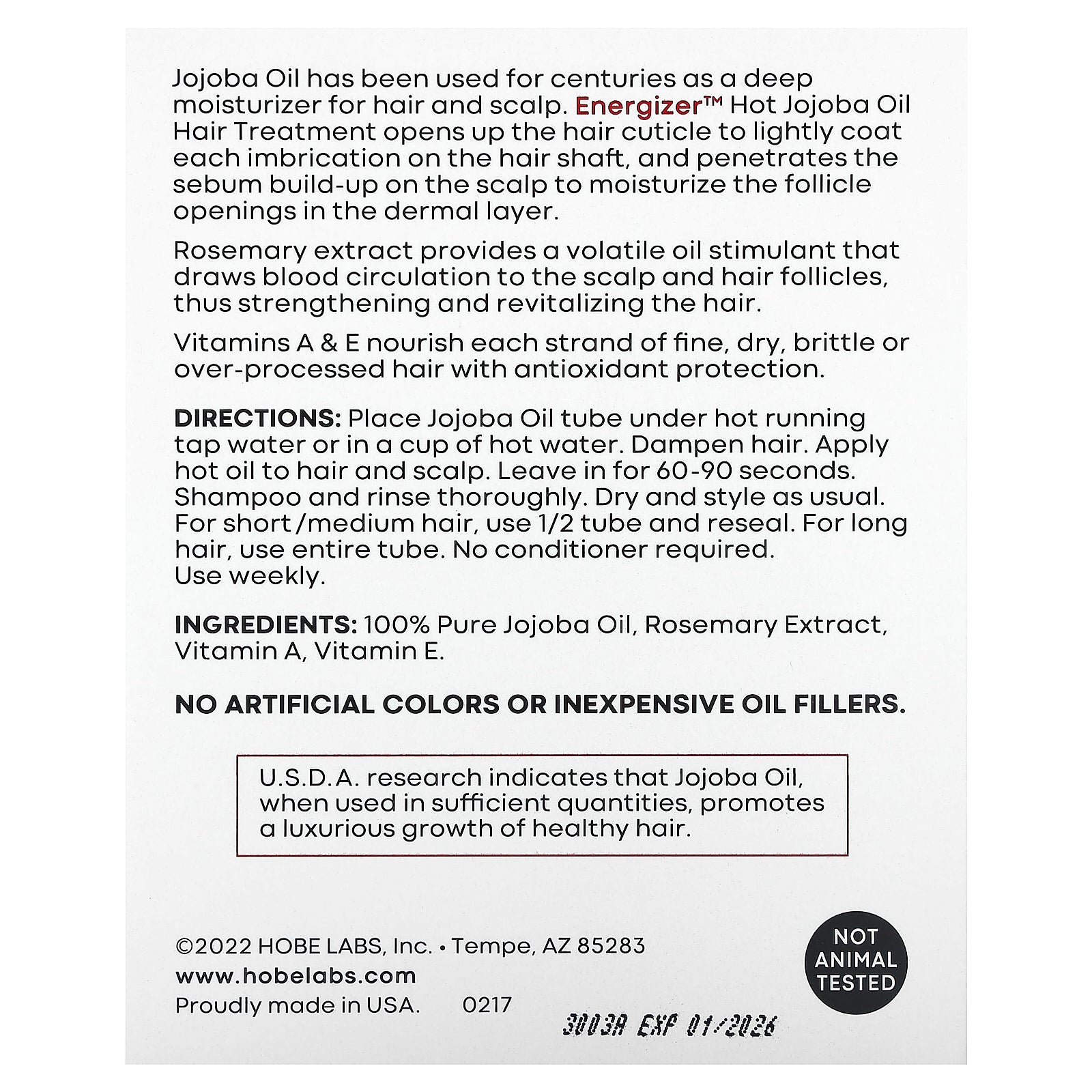 USDA research indicates that Jojoba Oil, when used in sufficient quantities, promotes a luxurious growth of healthy hair.