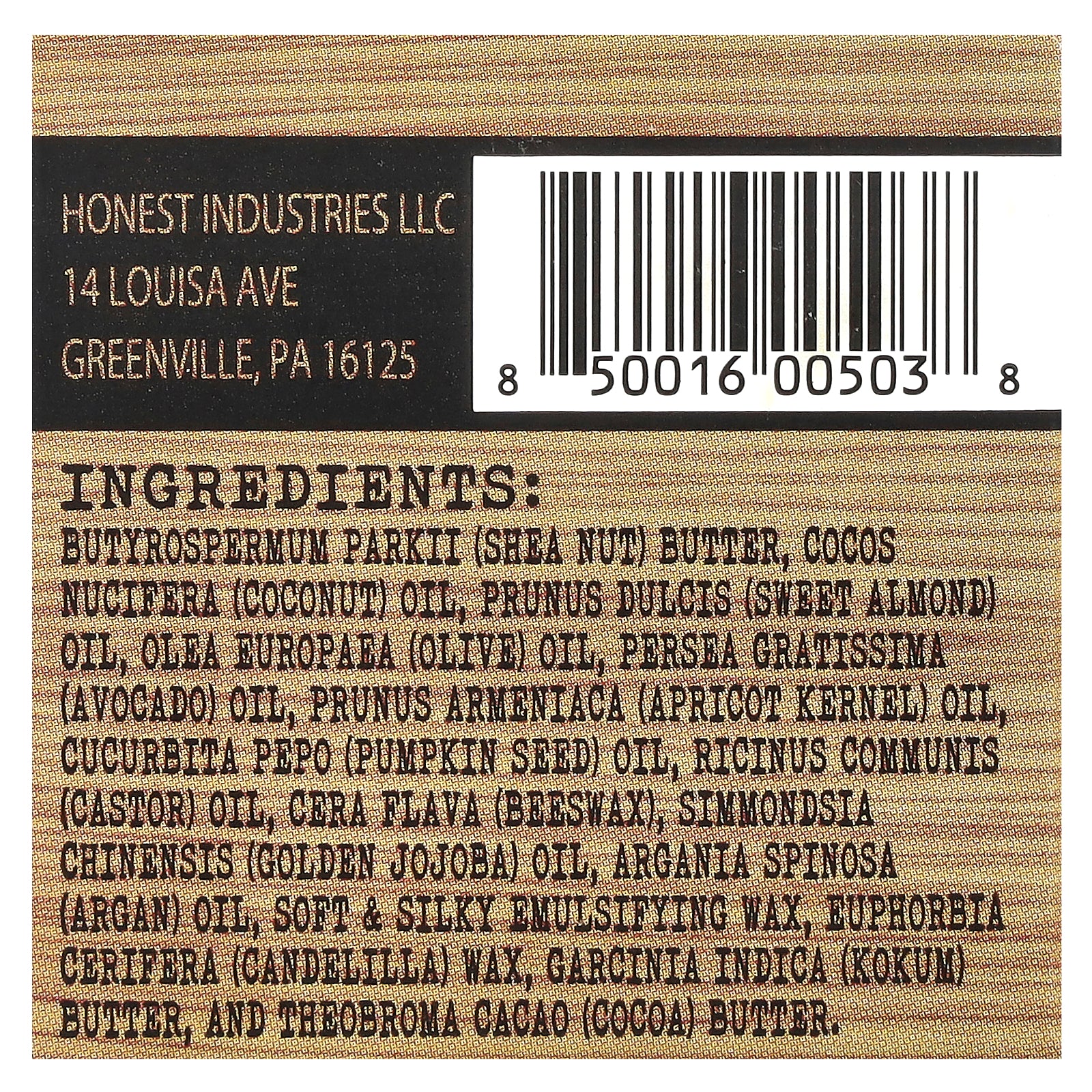 Butyrospermum parkii (shea nut), cocos nucifera (coconut) oil, prunus dulcis (sweet almond) oil, olea europaea (olive) oil, persea gratissima (avocado) oil, prunus armeniaca (apricot kernel) oil, cucurbita pepo (pumpkin seed) oil, ricinus communis (castor) oil, cera flava (beeswax), simmondsia chinensis (golden jojoba) oil, argania spinosa (argan) oil, soft & silky emulsifying wax, euphorbia cerifera (candelilla) wax, garcinia indica (kokum) butter, and theobroma cacao (cocoa) butter.
