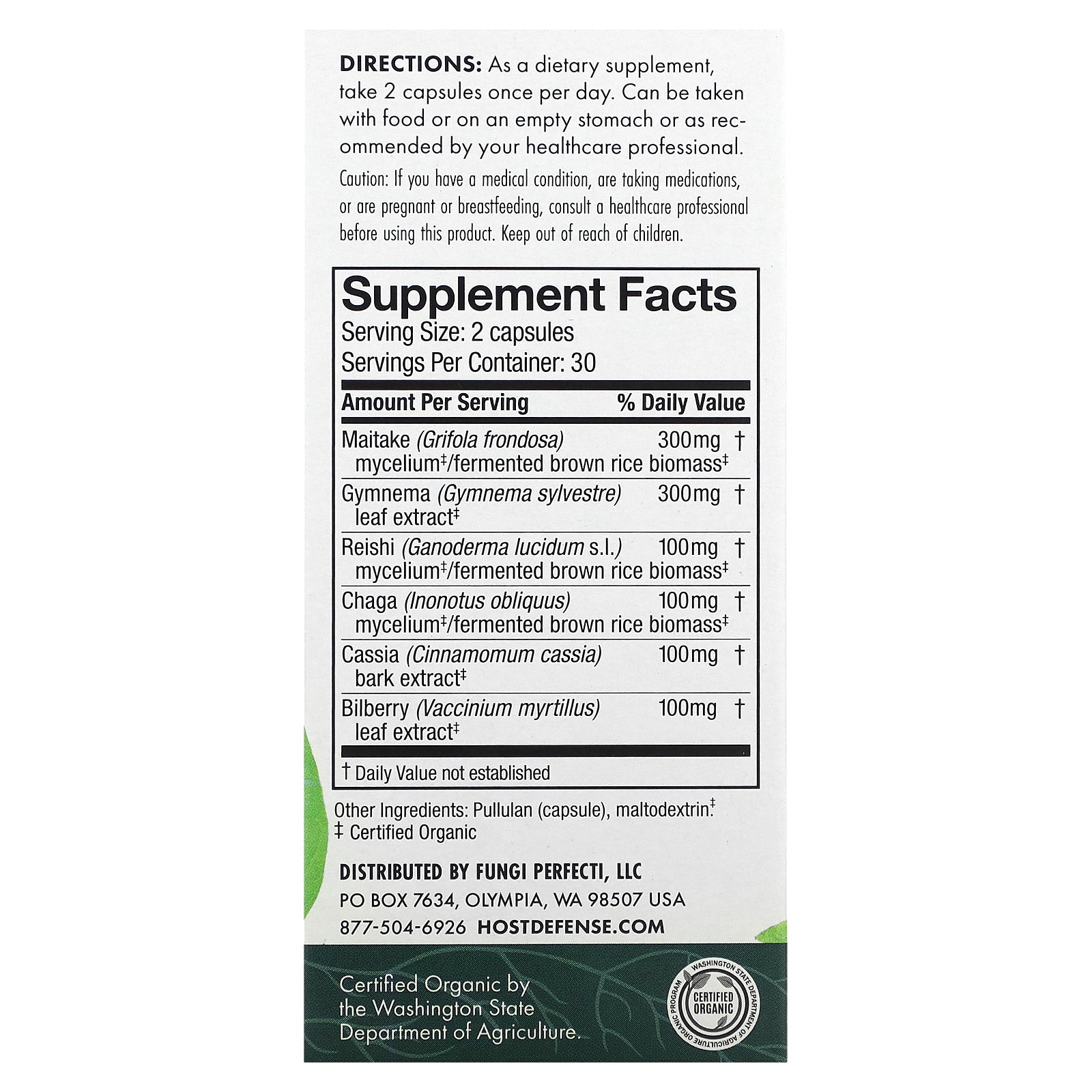 | Maitake (Grifola frondosa) mycelium‡/fermented brown rice biomass‡ | 300 mg | † |