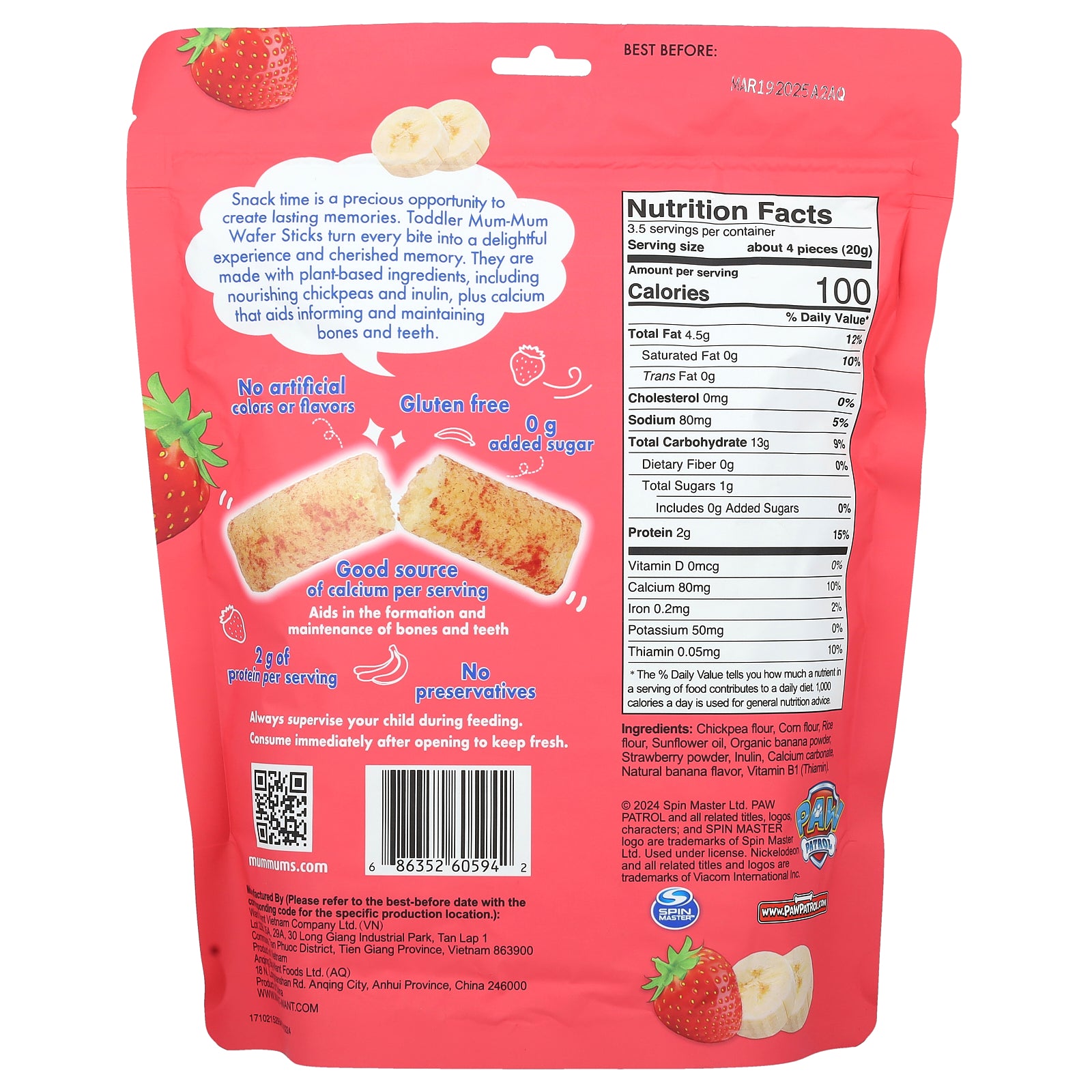 Snack time is a precious opportunity to create lasting memories. Toddler Mum-Mum Wafer Sticks turn every bite into a delightful experience and cherished memory. They are made with plant-based ingredients, including nourishing chickpeas and inulin, plus calcium that aids in forming and maintaining bones and teeth.