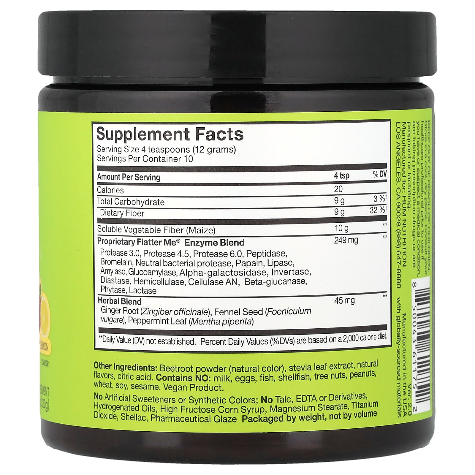 Proprietary Flatter Me® Enzyme Blend Protease 3.0, Protease 4.5, Protease 6.0, Peptidase Bromelain, Neutral bacterial protease, Papain, Lipase, Amylase, Glucoamylase, Alpha-galactosidase, Invertase, Diastase, Hemicellulase, Cellulase AN, Beta-glucanase, Phytase, Lactase |