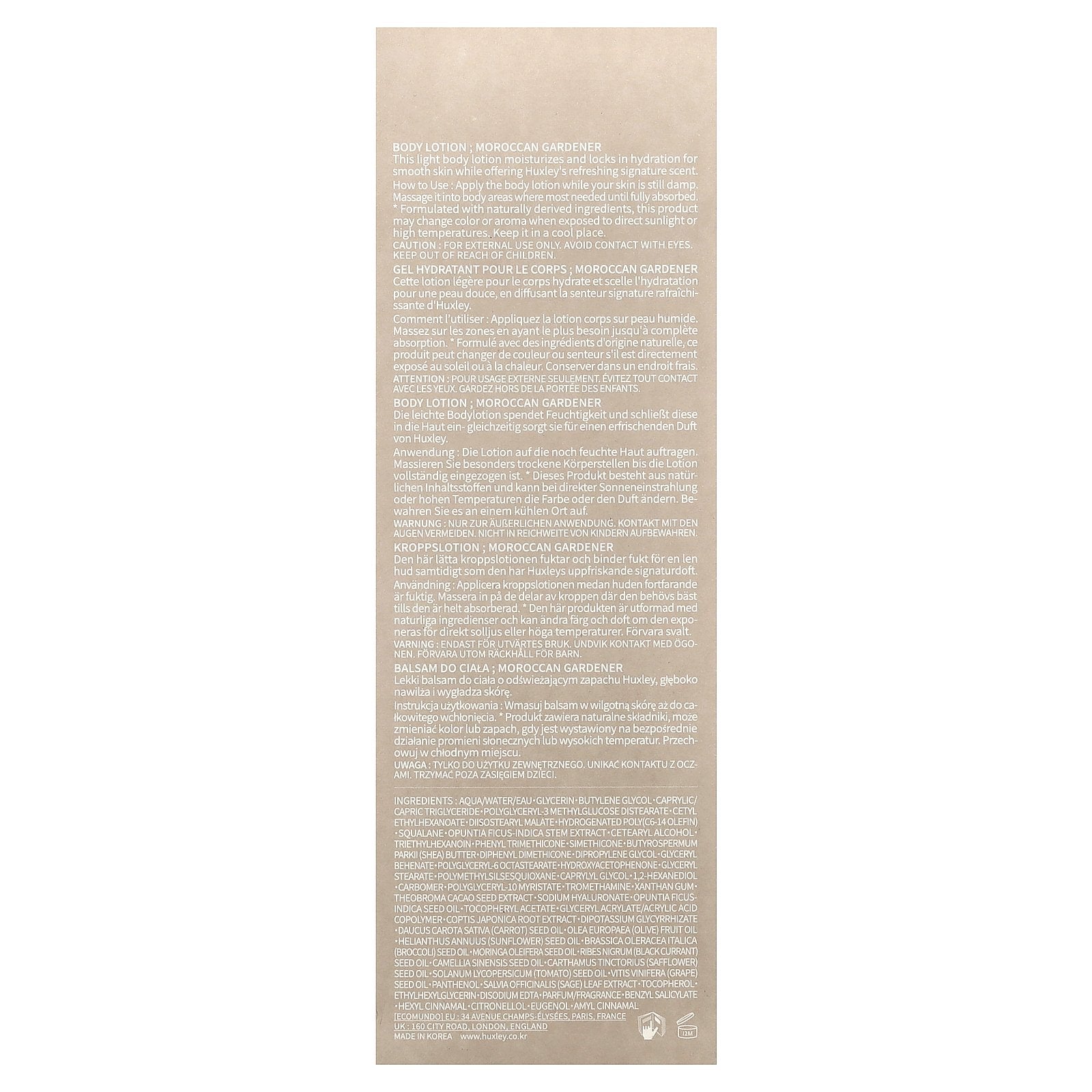 This light body lotion moisturizes and locks in hydration for smooth skin while offering Huxley's refreshing signature scent.