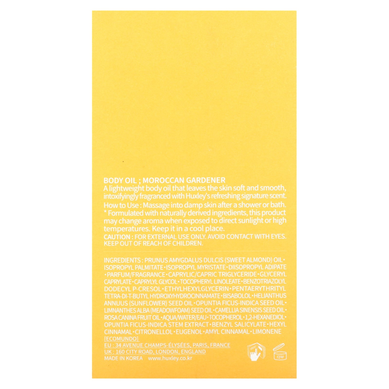 A lightweight body oil that leaves the skin soft and smooth. intoxifyingly fragranced with Huxley's refreshing signature scent.