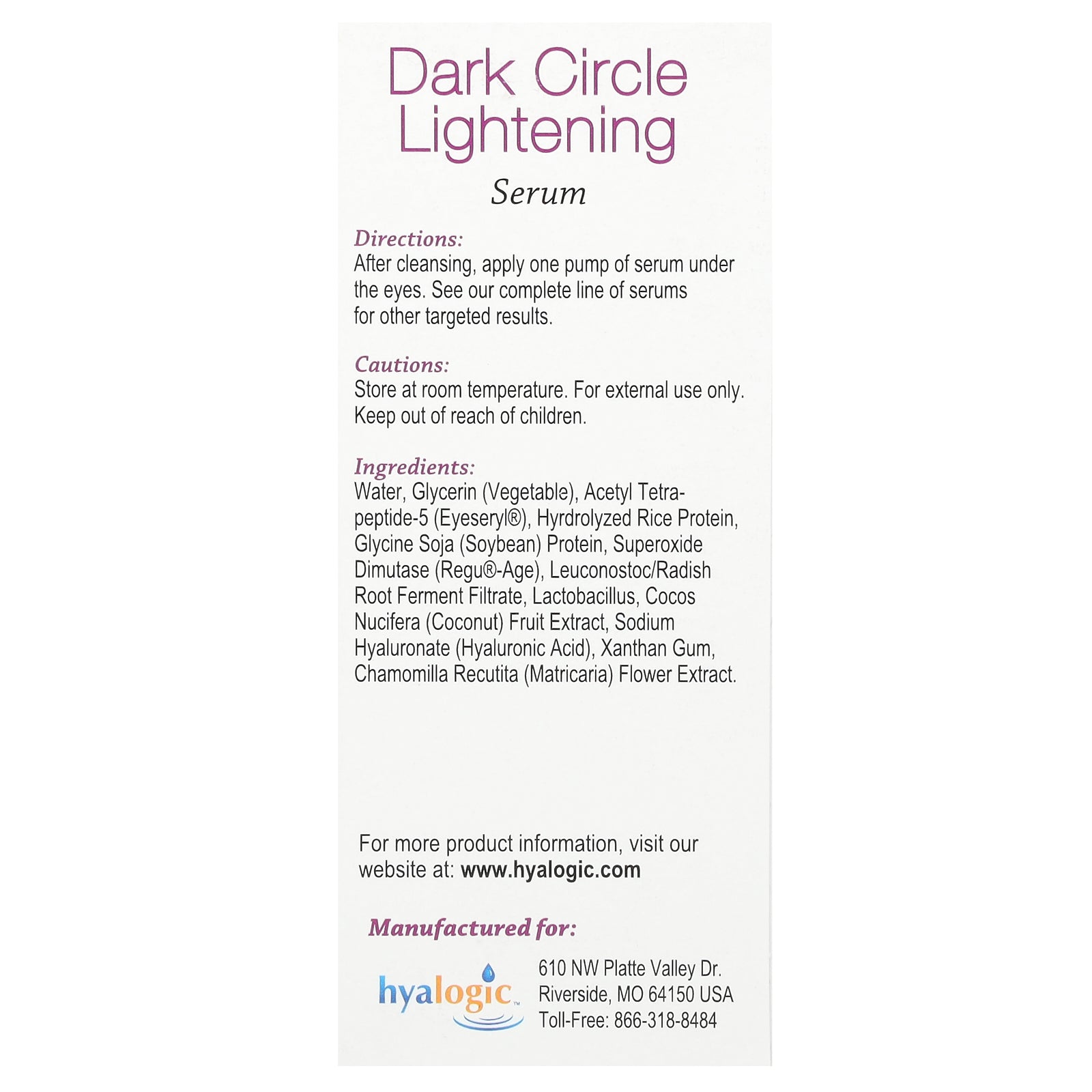 Dark Circle Lightening Serum is an effective combination of Hyaluronic Acid, Eyeseryl® and Regu®-Age designed to hydrate the skin and lessen the appearance of dark circles and puffiness.