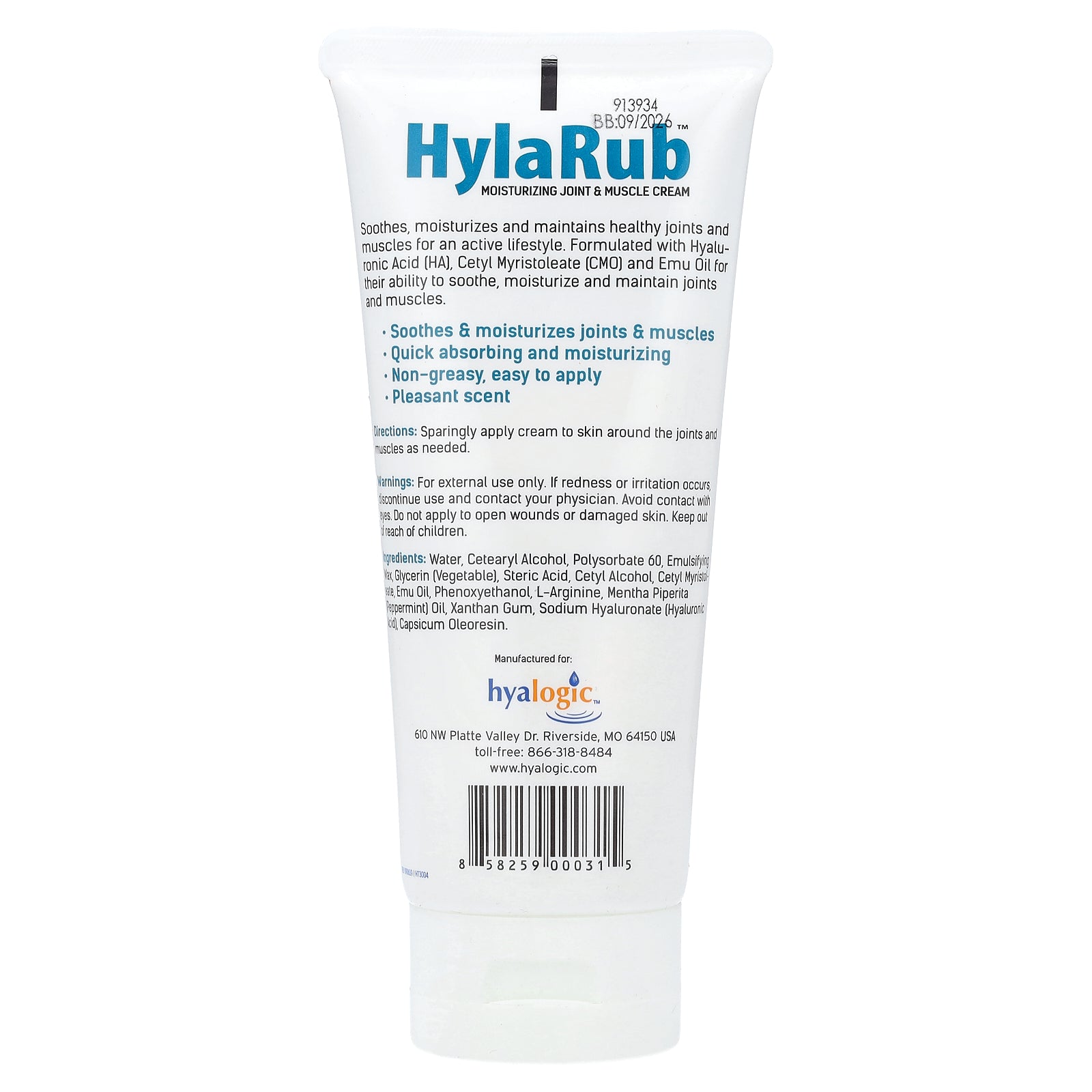 Soothes, moisturizes and maintains healthy joints and muscles for an active lifestyle. Formulated with Hyaluronic Acid (HA), Cetyl Myristoleate (CMO) and Emu Oil for their ability to soothe, moisturize and maintain joints and muscles.