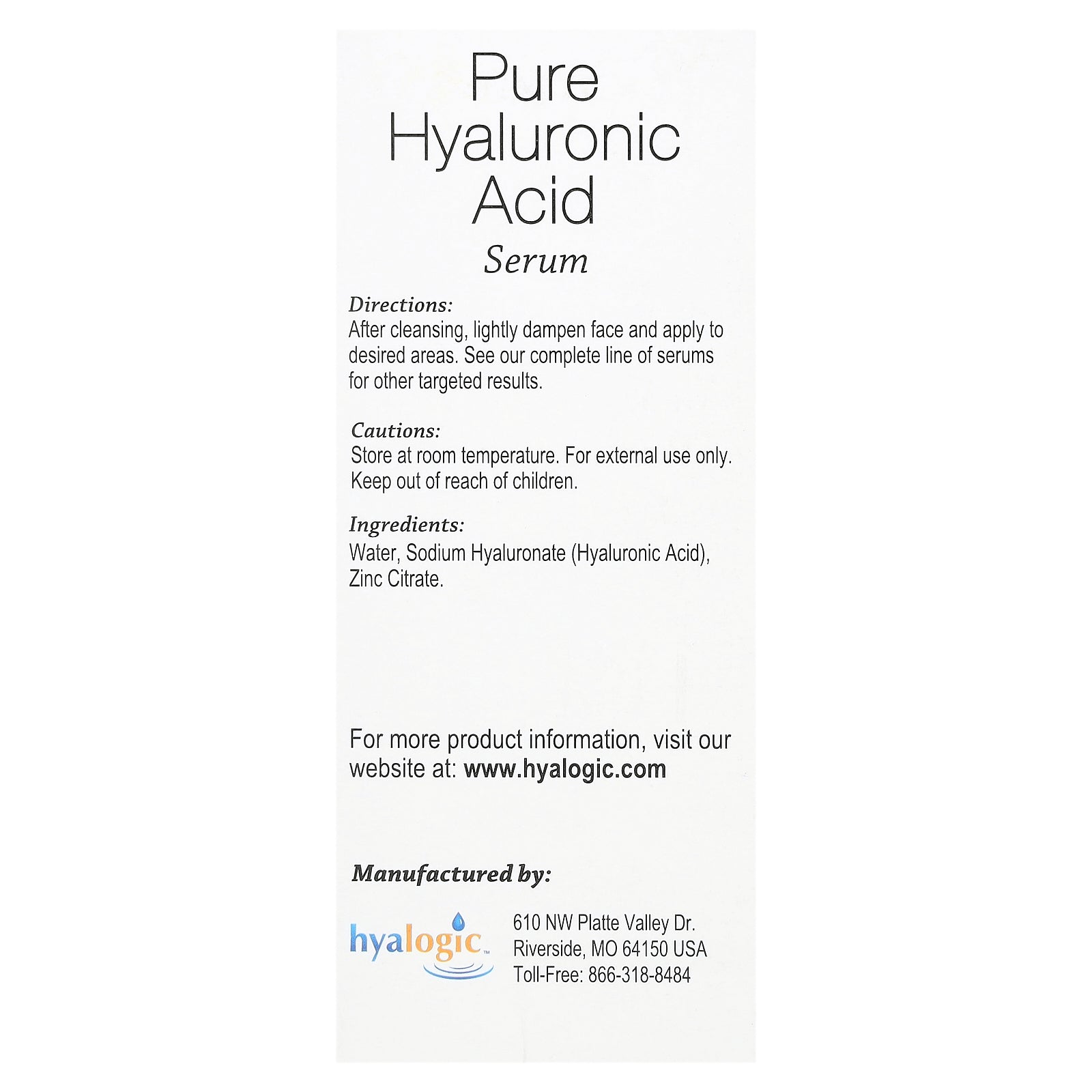 Pure Hyaluronic Acid Serum is an intensely hydrating serum. It improves the appearance of skin by enhancing the skin's hydration. Its light, non-oily texture soothes skin, leaving it fresh and soft while smoothing the look of fine lines and wrinkles. Pure HA Serum renews your skin's moisture for healthy-looking skin.