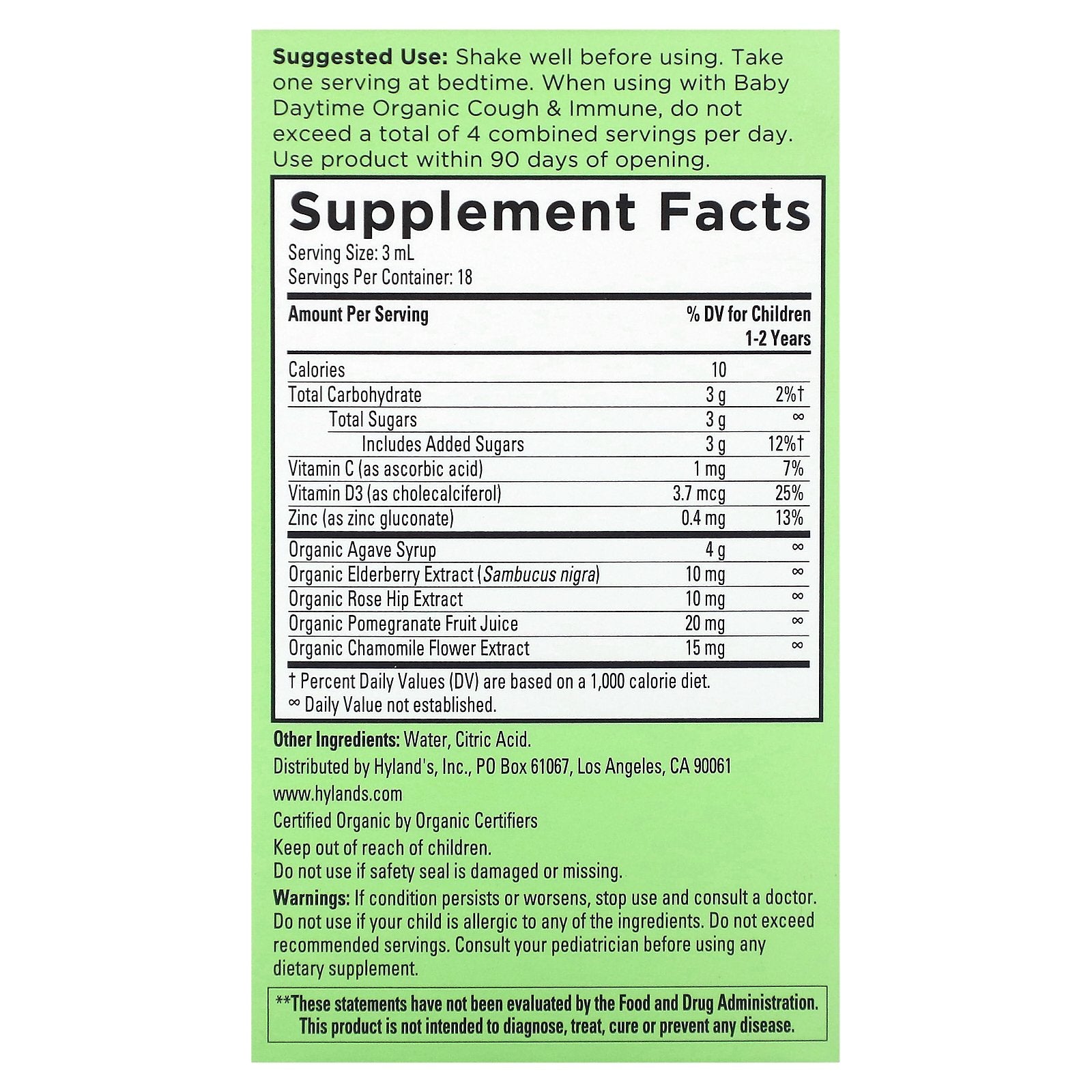 Shake well before using. Take one serving at bedtime. When using with baby daytime organic cough & immune, do not exceed a total of 4 combined servings per day. Use product within 90 days of opening.