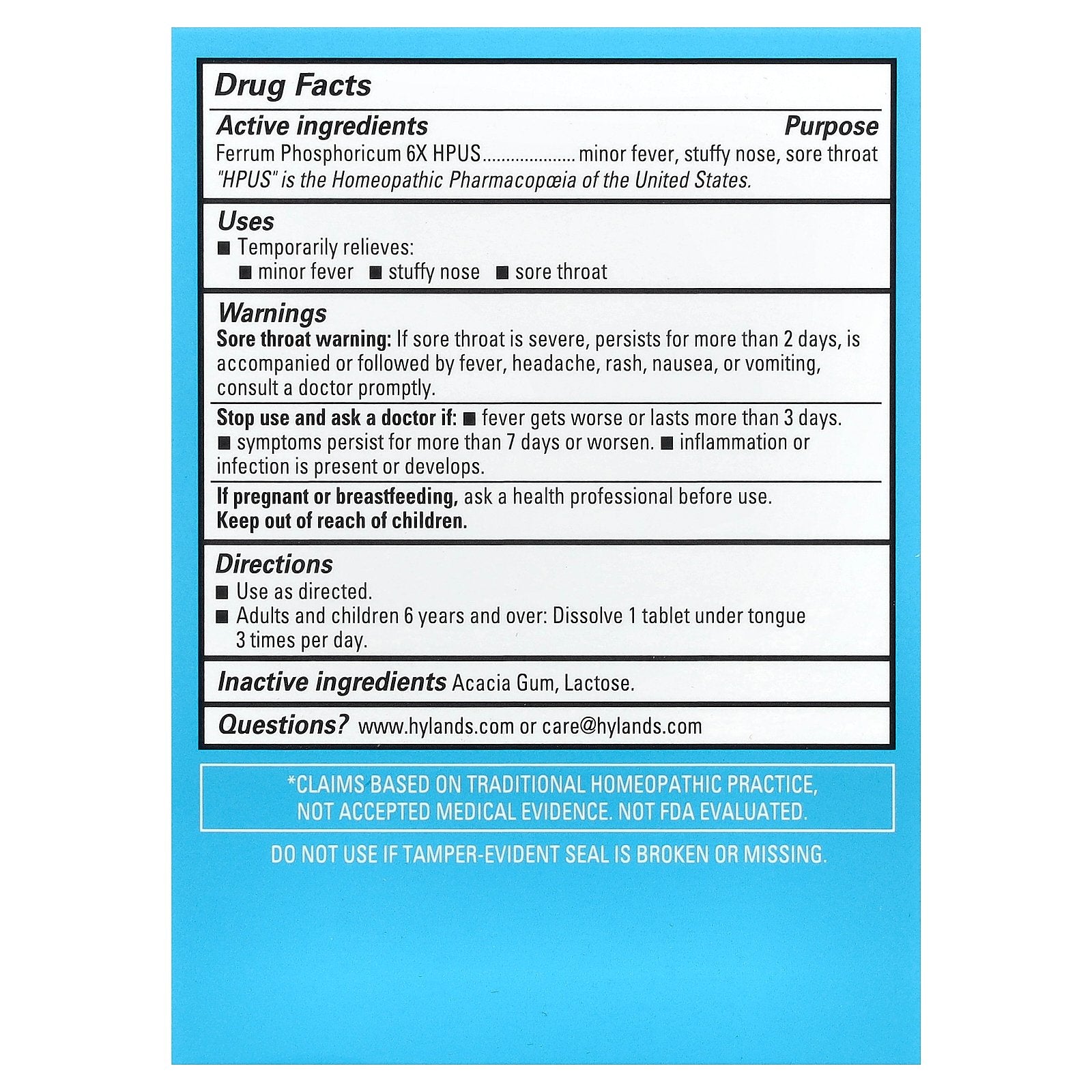 | Ferrum Phosphoricum 6X HPUS | Minor fever, stuffy nose, sore throat |