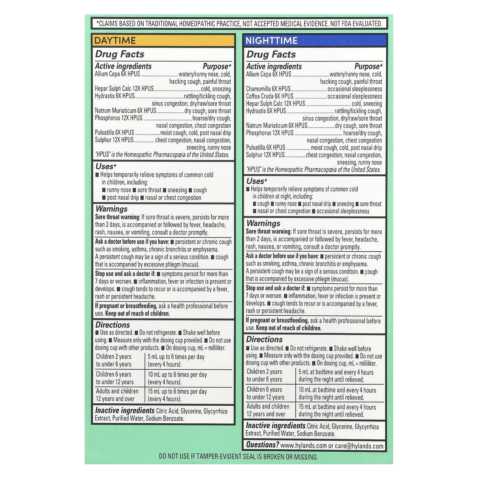 Uses: Temporarily relieves symptoms of common cold in children at night, including: