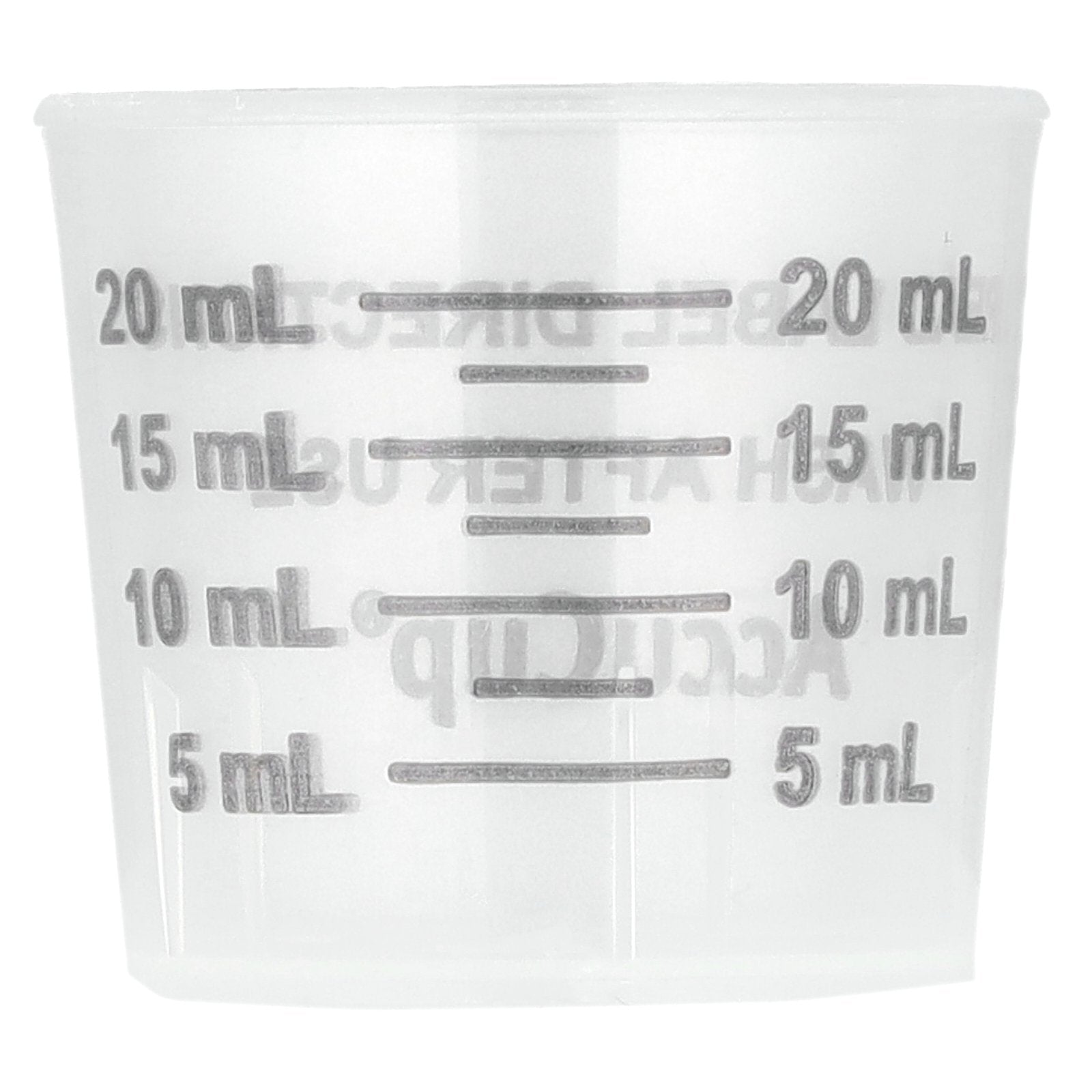 - On dosing cup, ml = milliliter