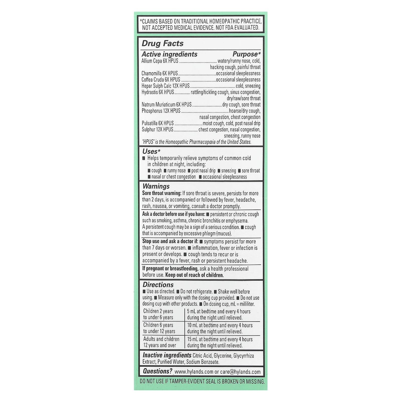 Uses: Helps temporarily relieve symptoms of common cold in children at night, including: