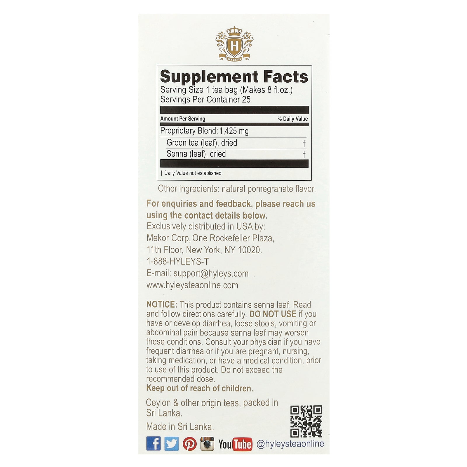 | Proprietary Blend: Green tea (leaf), dried Senna (leaf), dried |