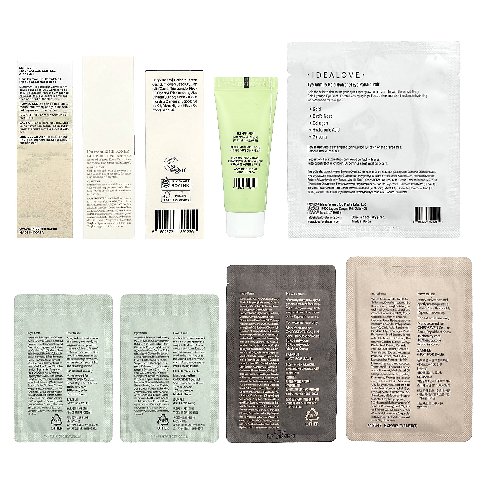 Idealove, Eye Admire Gold Hydrogel Eye Patches: Water, glycerin, butylene glycol, 1,2-hexanediol, ceratonia siliqua (carob) gum, chondrus crispus powder, hydroxyacetophenone, allantoin, glucomannan, polyglyceryl-10 laurate, propanediol, xanthan gum, potassium chloride, sodium polyacryloyldimethyl taurate, mica (ci 77019), caprylyl glycol, cellulose gum, dextrin, titanium dioxide (ci 77891), dipotassium glycyrrhizate, ethylhexylglycerin, fragrance(parfum), sodium polyacrylate, limonene, iron oxides (ci 77491), tin oxide, panax ginseng root extract, tremella fuciformis (mushroom) extract, ethyl hexanediol, tocopherol, gold (ci 77480), swiftlet nest extract, hyaluronic acid, hydrolyzed hyaluronic acid, sodium hyaluronate.
