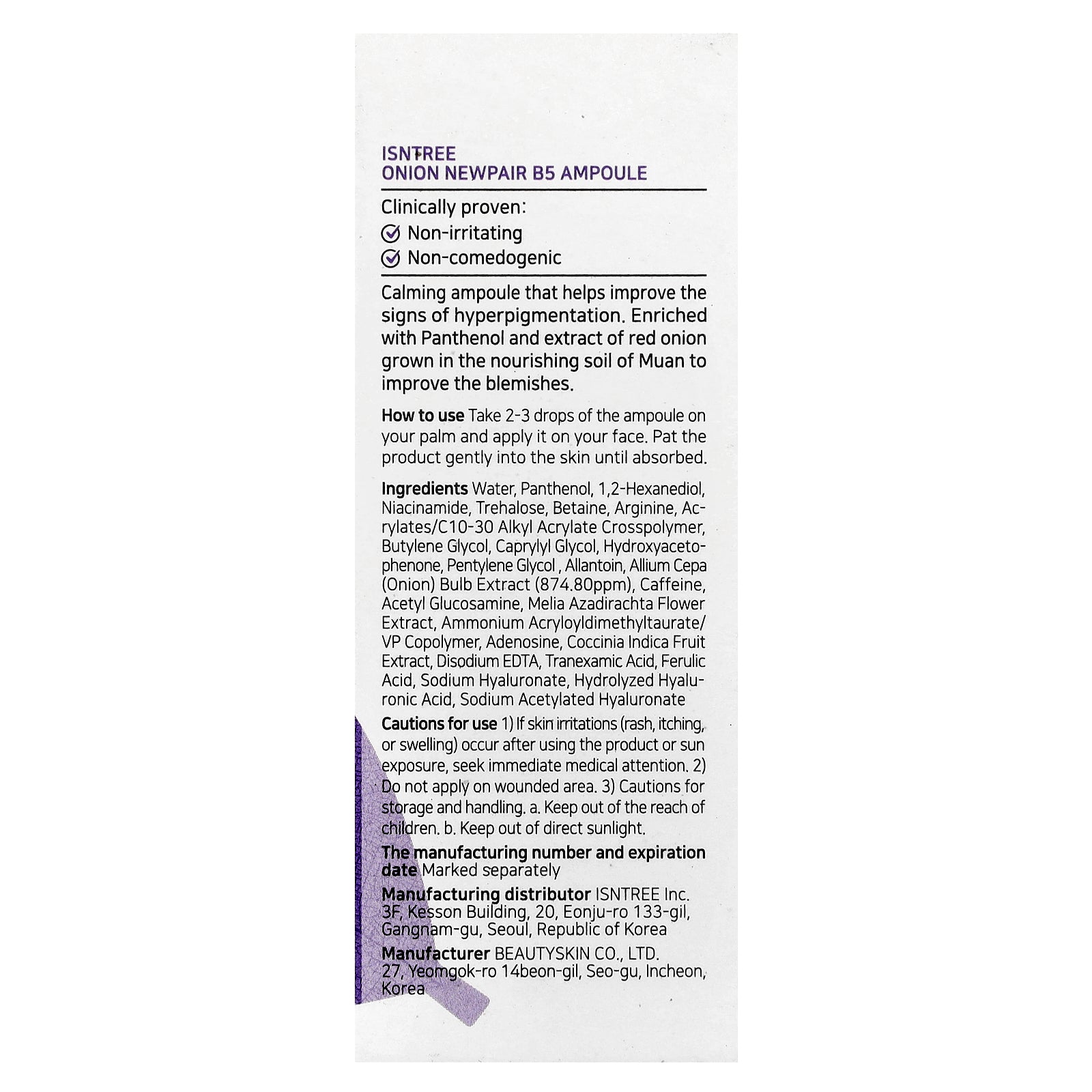 Calming ampoule that helps improve the signs of hyperpigmentation. Enriched with Panthenol and extract of red onion grown in the nourishing soil of Muan to improve the blemishes.