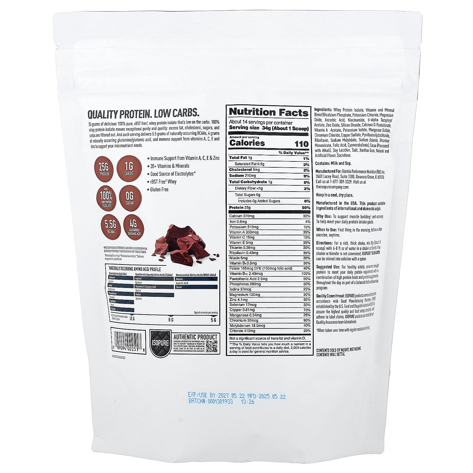 25 grams of delicious 100% pure, rBST free†, whey protein isolate that's low on the carbs. 100% whey protein isolate means exceptional purity and quality: excess fat, cholesterol, sugars, and carbs are filtered out. And each serving delivers 5.5 grams of naturally occurring BCAAs, 4 grams of naturally occurring glutamine/glutamic acid, and immune support from vitamins A, C, E and zinc to support your micronutrient needs.