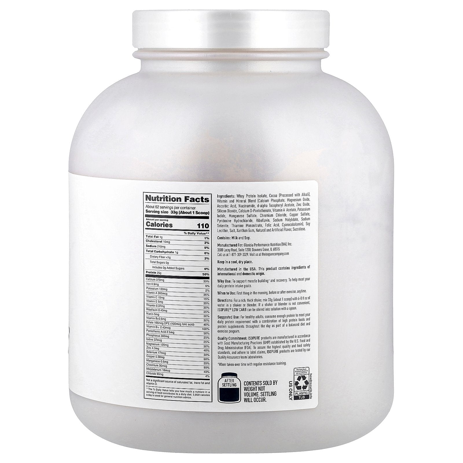 25 grams of delicious 100% pure, rBST free‡, whey protein isolate that's low on the carbs. 100% whey protein isolate means exceptional purity and quality: excess fat, cholesterol, sugars, and carbs are filtered out. And each serving delivers 5.5 grams of naturally occurring BCAAs, 4 grams of naturally occurring glutamine/glutamic acid, and immune support from Vitamins A, C, E, & zinc to support your micronutrient needs.