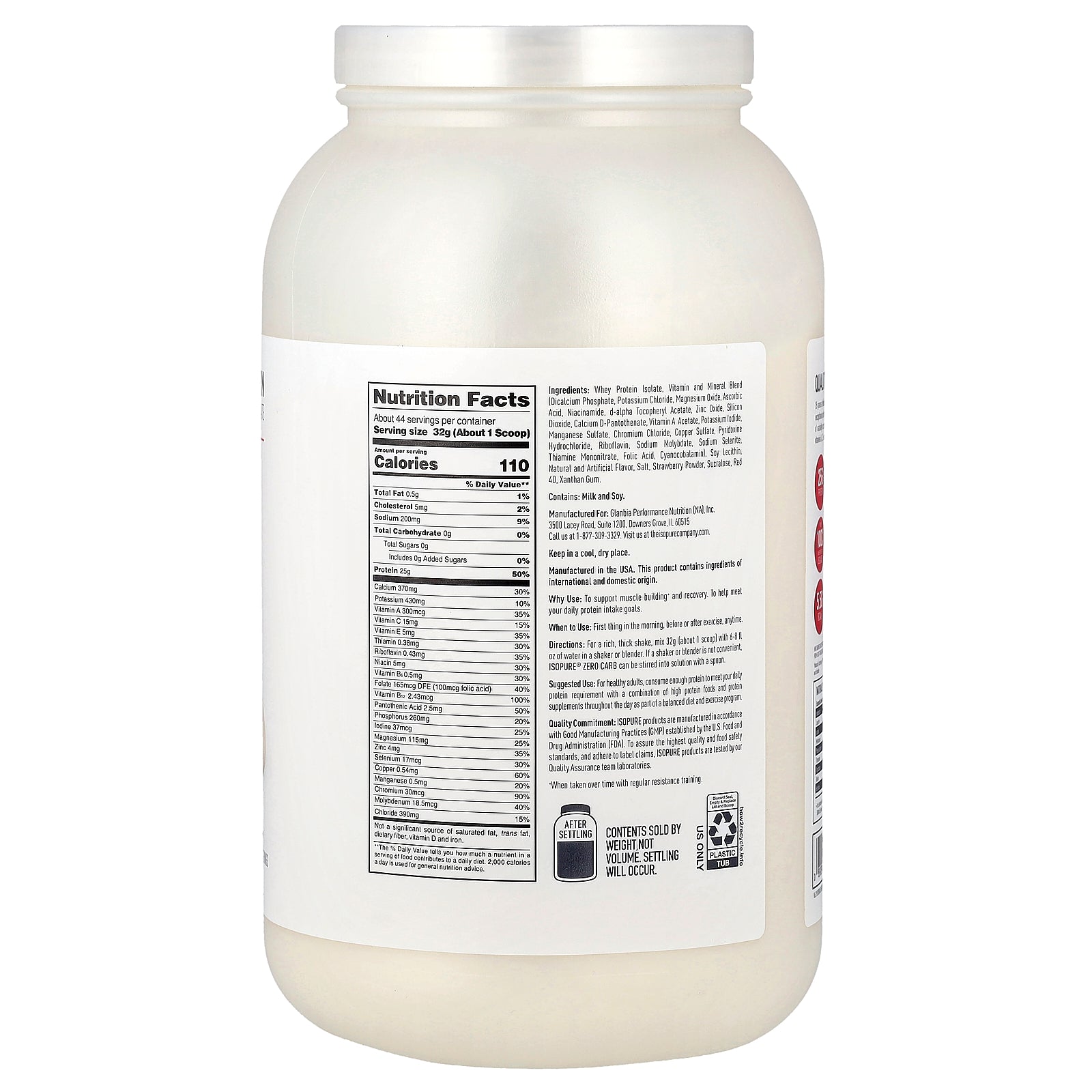 25 grams of delicious 100% pure, rBST free†, whey protein isolate with zero grams of carbs. 100% whey protein isolate means Exceptional purity and quality: excess fat, cholesterol, sugars, and carbs are filtered out. And each serving delivers 5.5 grams of naturally occurring BCAAs, 4 grams of naturally occurring glutamine/glutamic acid, and provides immune support from vitamins A. C. E and zinc to support your micronutrient needs.