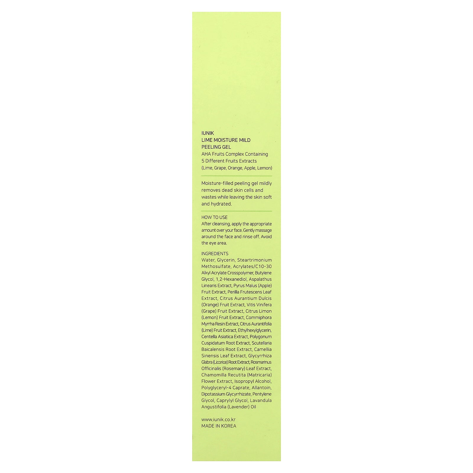 Moisture-filled peeling gel mildly removes dead skin cells and wastes while leaving the skin soft and hydrated.