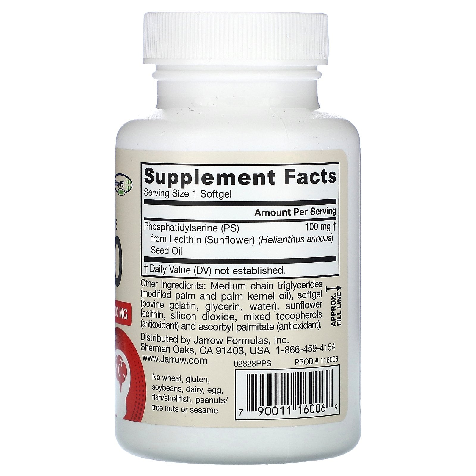 Phosphatidylserine (PS) is a natural phospholipid that is a structural component of cell membranes. It is an important phospholipid present in the brain and supports brain health. Jarrow Formulas® PS100, featuring Sharp-PS®, utilizes a concentrated form of phosphatidylserine from sunflower lecithin (soy-free) that offers excellent stability.