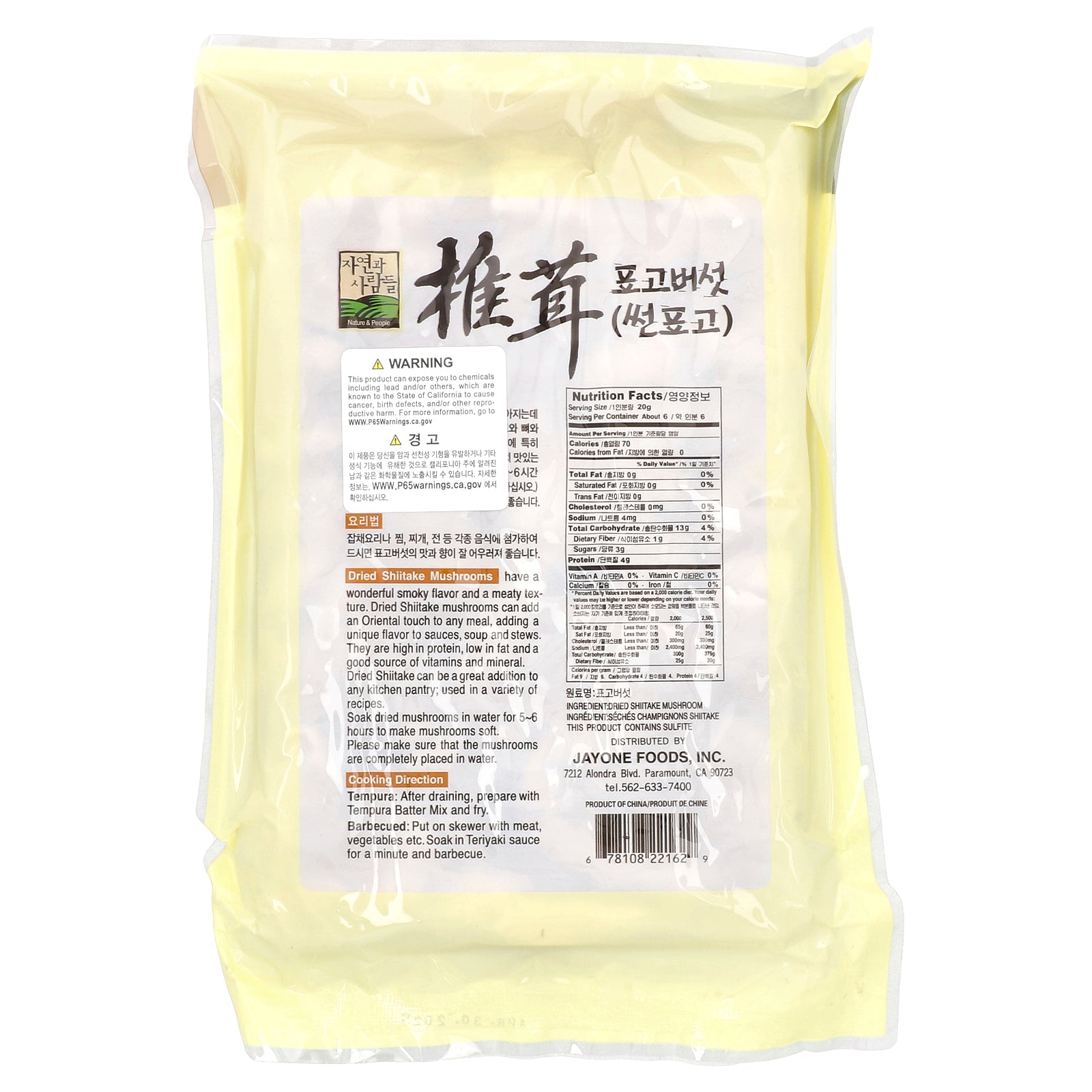 Dried Shiitake Mushrooms have a wonderful smoky flavor and a meaty texture. Dried Shiitake mushrooms can add an Oriental touch to any meal, adding a unique flavor to sauces, soup and stews. They are high in protein, low in fat and a good source of vitamins and mineral. Dried Shiitake can be a great addition to any kitchen pantry; used in a variety of recipes.